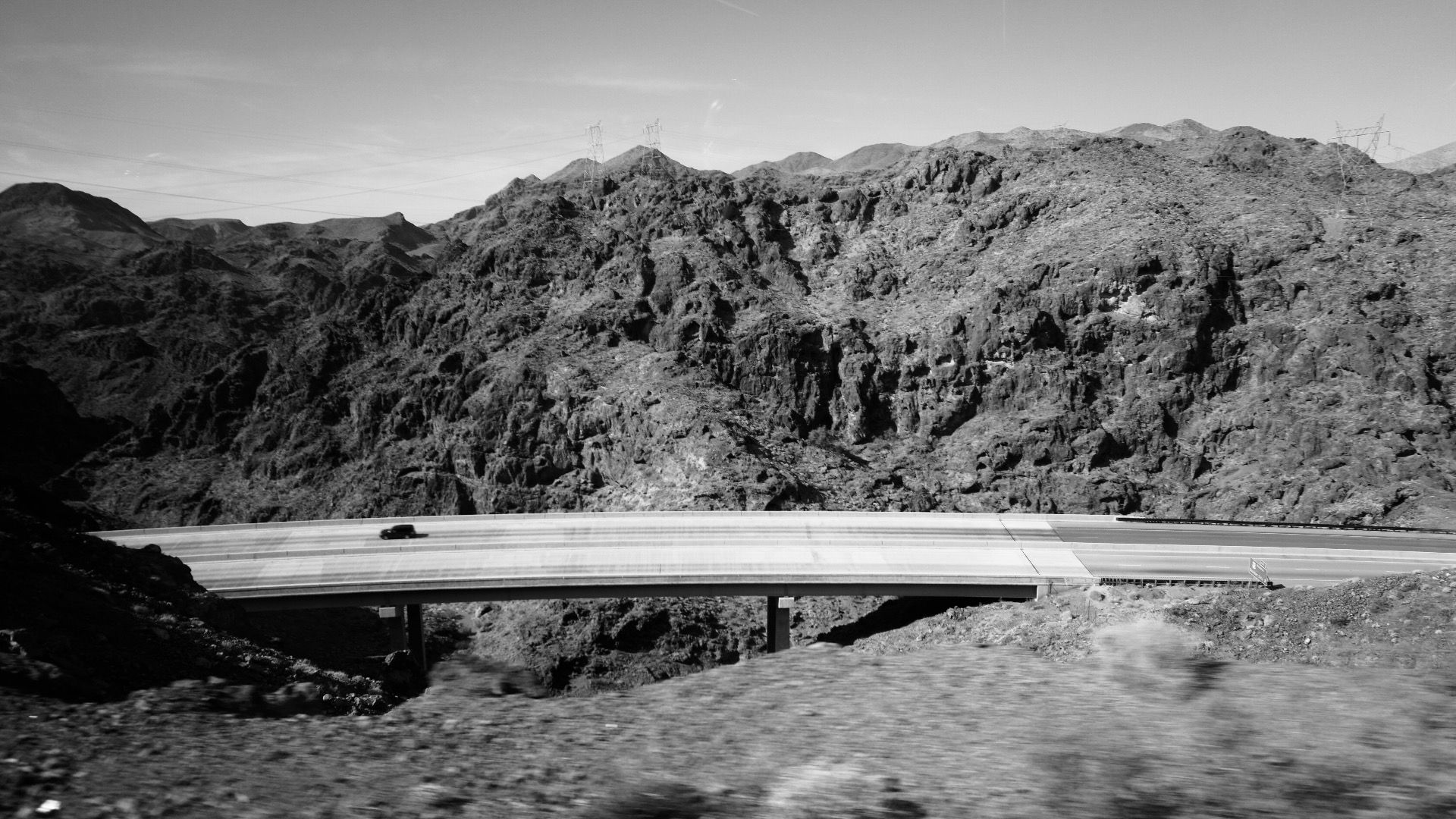 We had actually arrived at the boarder between Nevada and Arizona where the Hoover Dam is located. It's a 10 minute walk up the rocks and along the Hoover Dam Bypass Bridge.
