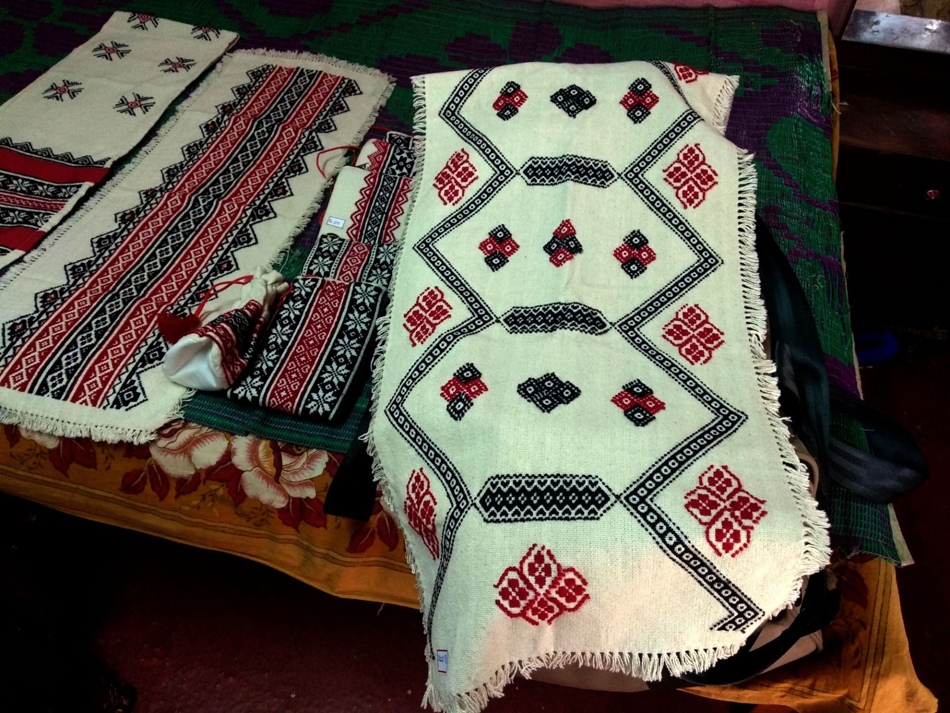 These are the items the ladies sold which are made out of their embroidered cloth. The price ranged from 250 for the sling bags to 2000 for the shawls. There were tablecloths, shawls in different sizes and more. She displayed it all on a mat.