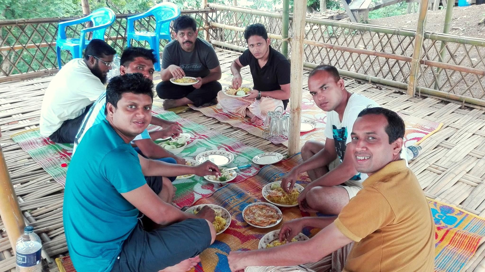 In the next morning I woke up and went out to see the sunrise. There was cold air all around. And in this cold air, the environment looked so beautiful. It is very healthy to be able to walk in the morning in such a cold environment. So, none of us wanted to miss this opportunity. We start our walk long before sunrise. Tourists in the vicinity are also slowly leaving. There we all climbed to the top of a hill from where the sunrise was very beautiful. From then we continued to walk. Ruilui neighborhood we turned around completely and came back to our hotel again. Breakfast was already ordered. We all ate breakfast together as seen in the picture. It is well known that it is very difficult to find food in mountainous or remote areas. So high quality food is not available in these tourist centers. We ate fried eggs with khichuri (A food made with rice and Dal). After a lot of walking in the morning, this food looked a lot like nectar. Since everything here is fresh and fresh, the food was also fresh and fresh.