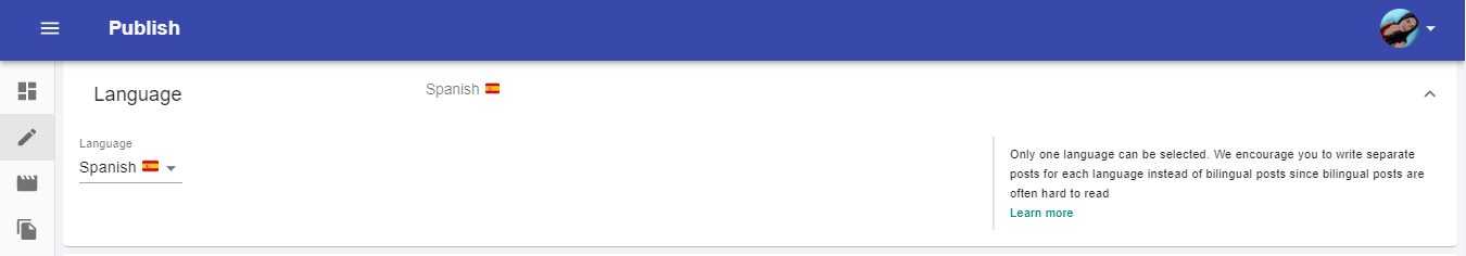 Nota: Es importante que antes de hacer click en publicar, verifiques que hayas seleccionado el idioma Español (Spanish) para que tu post pueda ser considerado en la curación de esa categoría.