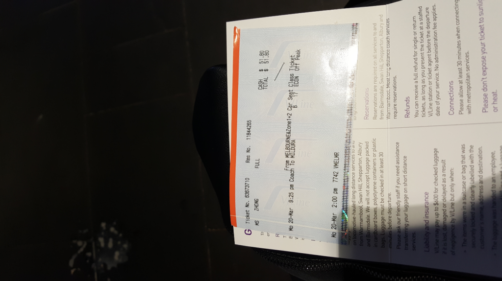 I am a prudent person, so I am afraid I would not find a job when I came to Australia, so I look for it before I leave China ! So now I have to go directly to my work place Mildura from Southern Cross Station! However, the car will not leave until evening. I haven’t slept all day, and because the suitcase broken, I can’t go anywhere, I can only sit at the station till night!