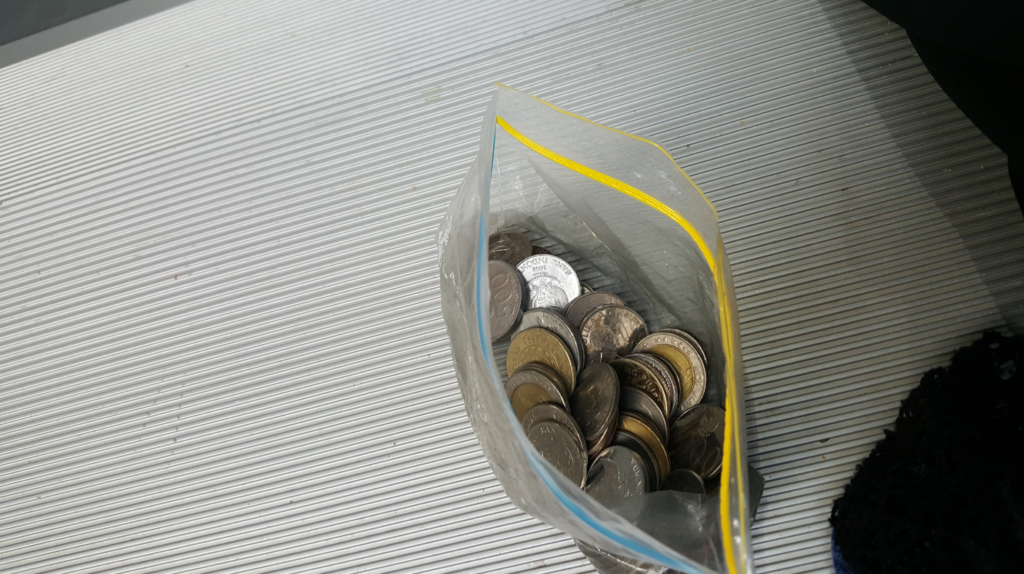 I don’t know who left this bag of coins. There are coins of many countries, such as Australian dollars, US dollars, Indonesian rupiahs, and Euros. It should be forgotten here by a collector. I didn’t move the bag of money so that he could find it when he came back. I wonder if he came back to look for it.