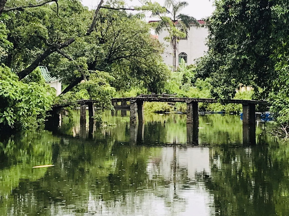 Chadong Park, a deserted park of the Qing Dynasty, the front door is locked, but you can walk in from behind. After entering, you can only see the fell leaves and ruined pavilions. There is a Wudu Bridge in the park. It is said to be built more than 500 years ago. It is made of five pieces of granite. It used to be the main passage for Chadong Village to contact the outside world.