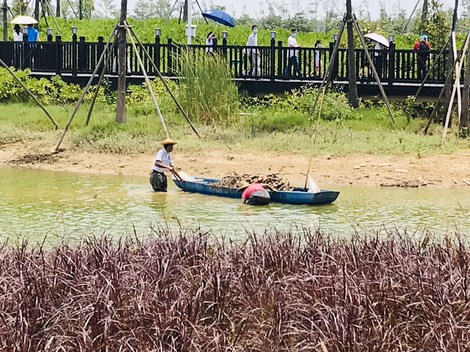 I saw two staff in the waterway. I didn't care much at first, but when I saw what was on the boat, I was instantly curious! All the lotus roots are on the boat. I just know that they are planting lotus flowers. And also just know that lotus flowers are borrowed directly from whole lotus? Get more knowledge ~ That means we can see here full with lotus if we come back in August? Look forward to ~