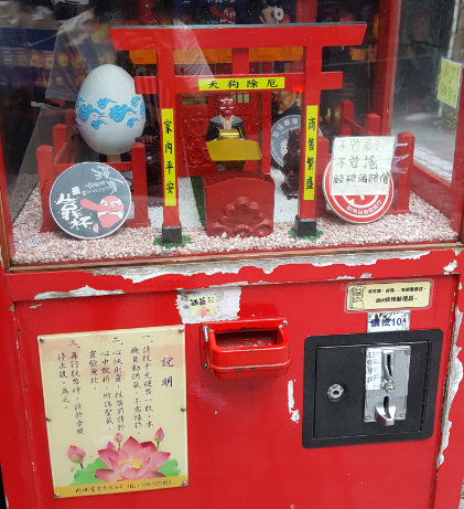 There is a pray machine outside the post office. After entering TWD 10, Tengu will go and give you a stick !