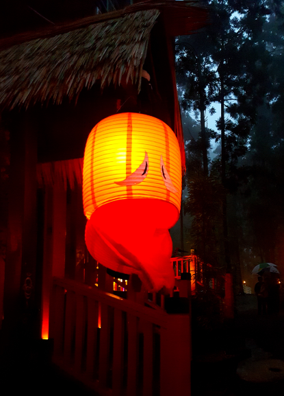 The buildings in the village are full of Japanese style, especially after the lights on at night, here are not normal street lights. The lights are all lanterns, some lanterns are with a very monster style!