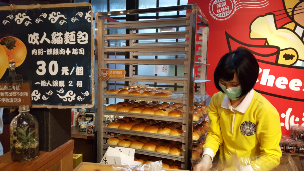 The most famous shop here is Kubota Bakery! This shop has long queues every day with a kind of bread called biting cat. Biting cat is not a cat, it is a kind of grass, it seems that it will itch when you touch it.