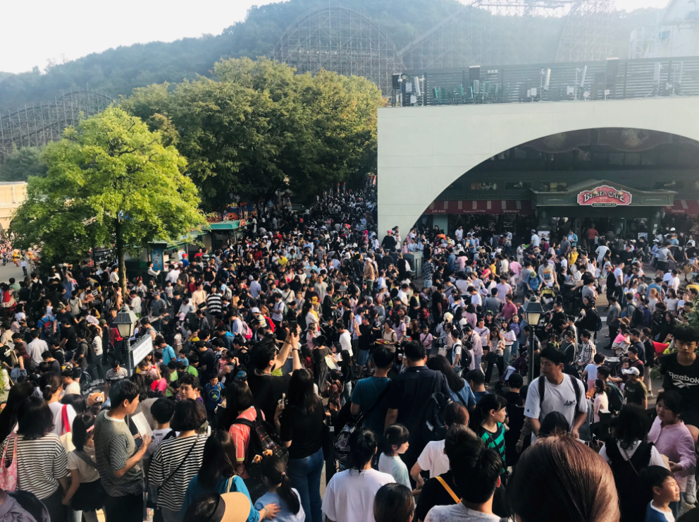 I originally thought that it was October 5th, Chinese tourists should all go back to work. And it was not a weekend, Korea is also a work day, so there should not be many people. But when we arrived at the shuttle station, we saw a lot of people, and we had queued for half an hour before entering the park.