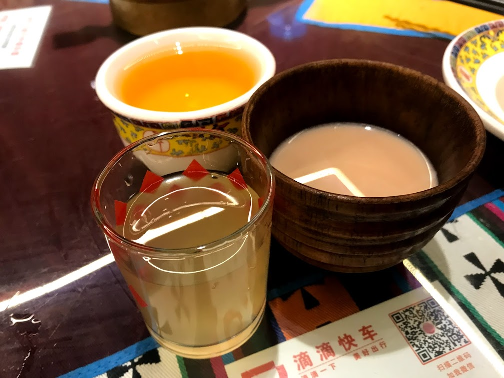 At the first day of the road trip , we taste the salty buttered tea, we don't like it , today we taste the sweet one, it's like the milk tea, we like this taste !