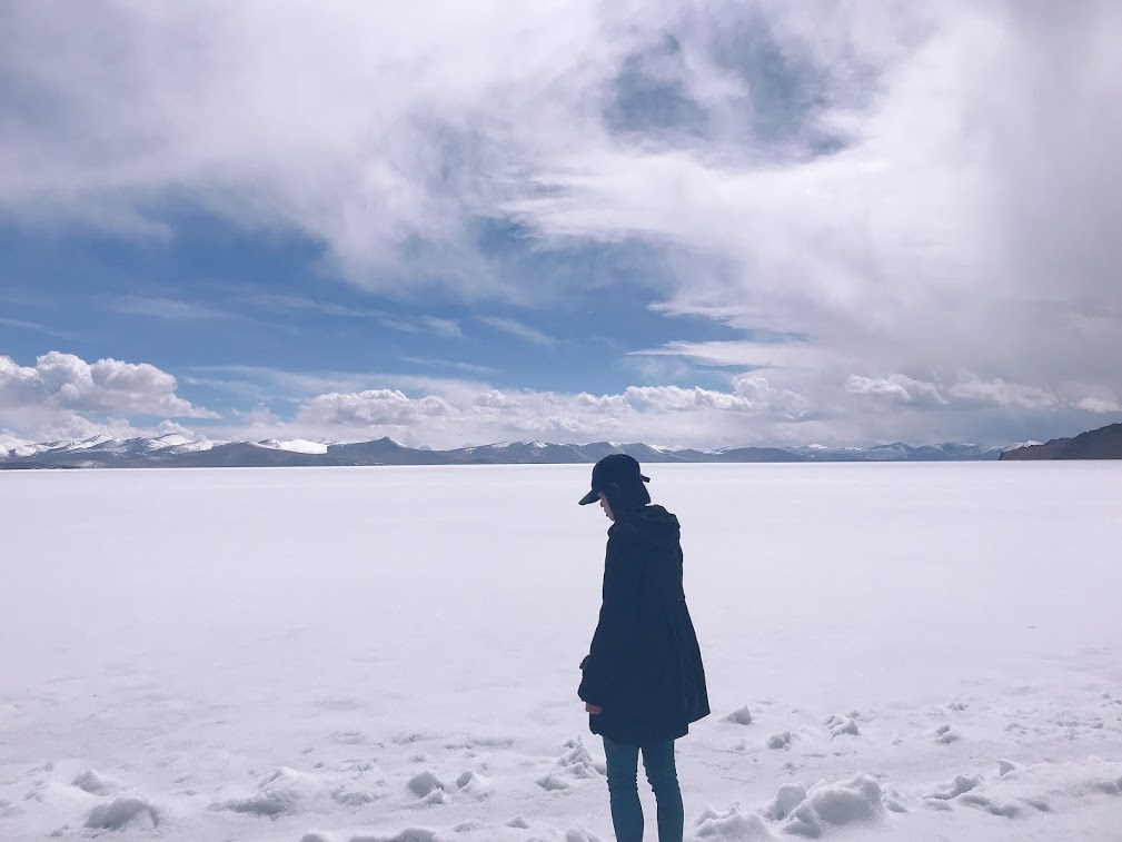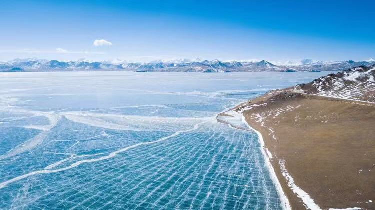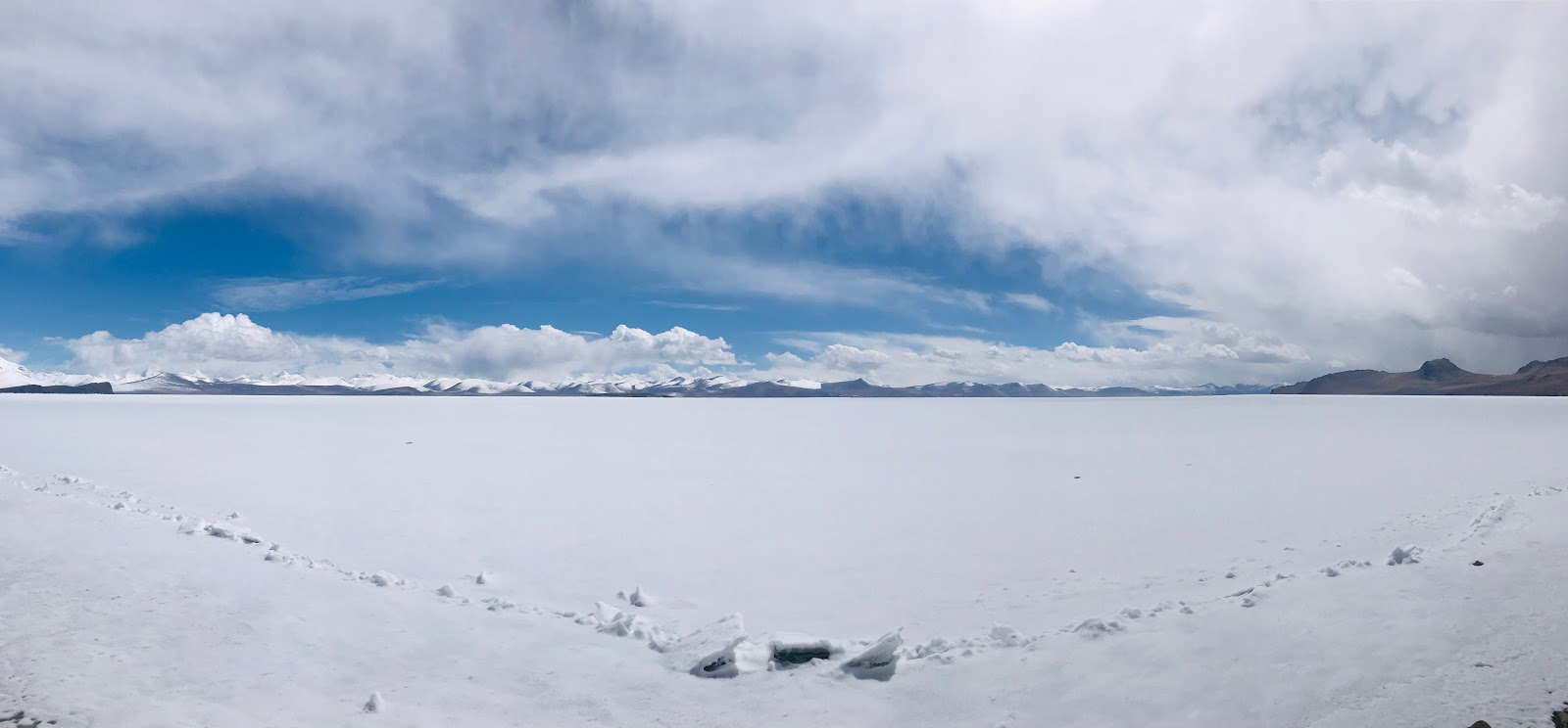 In winter , Puma Yumco will become a ice lake , you can walk on it , when we arrived ,there was no any step on it ,means we are the first group arrived here today ~