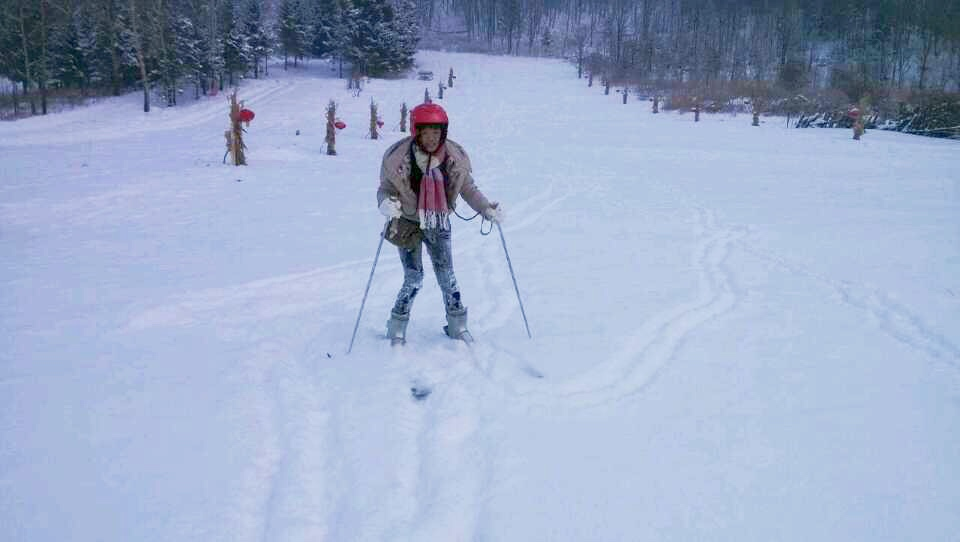 Under the instructions of the resort owner, I put on the ski equipment and waddled walked to the ski area ~ Because there are no tourists, the entire ski resort is my world! Yeah ~ (No one will see even if I fall!)