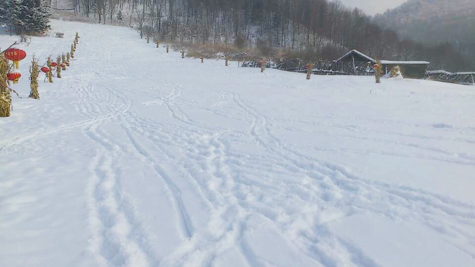 I found that skiing is very tiring, not means tired when skiing, but means tired when climbing up the mountain with two skis! After climbing a few times, I really had no energy ! See, the whole ski resort has changed from one trace to many traces, all are my masterpieces!