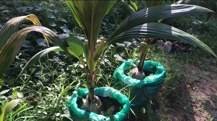 Baby coconut trees , I found that coconut trees are plant by whole coconuts, some coconuts drop from trees , leave them , they will grow some new coconut trees from that coconuts.