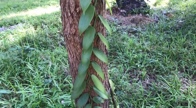 Guess what is this ?it's vanilla. Normally , we buy a vanilla is a vanilla bean, but this one still a baby vanilla, it will grow up , and open flowers , then grow to beans.