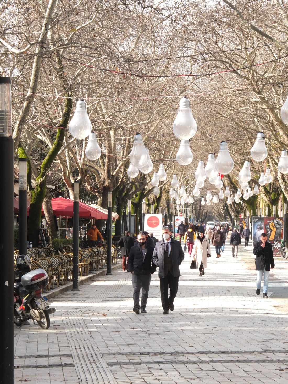 Tirana is known for it's ever present cafés, pubs and bars. Picture below being one of the most central and popular street at around lunch time. All the light bulbs giving it somewhat inspirational feeling.
