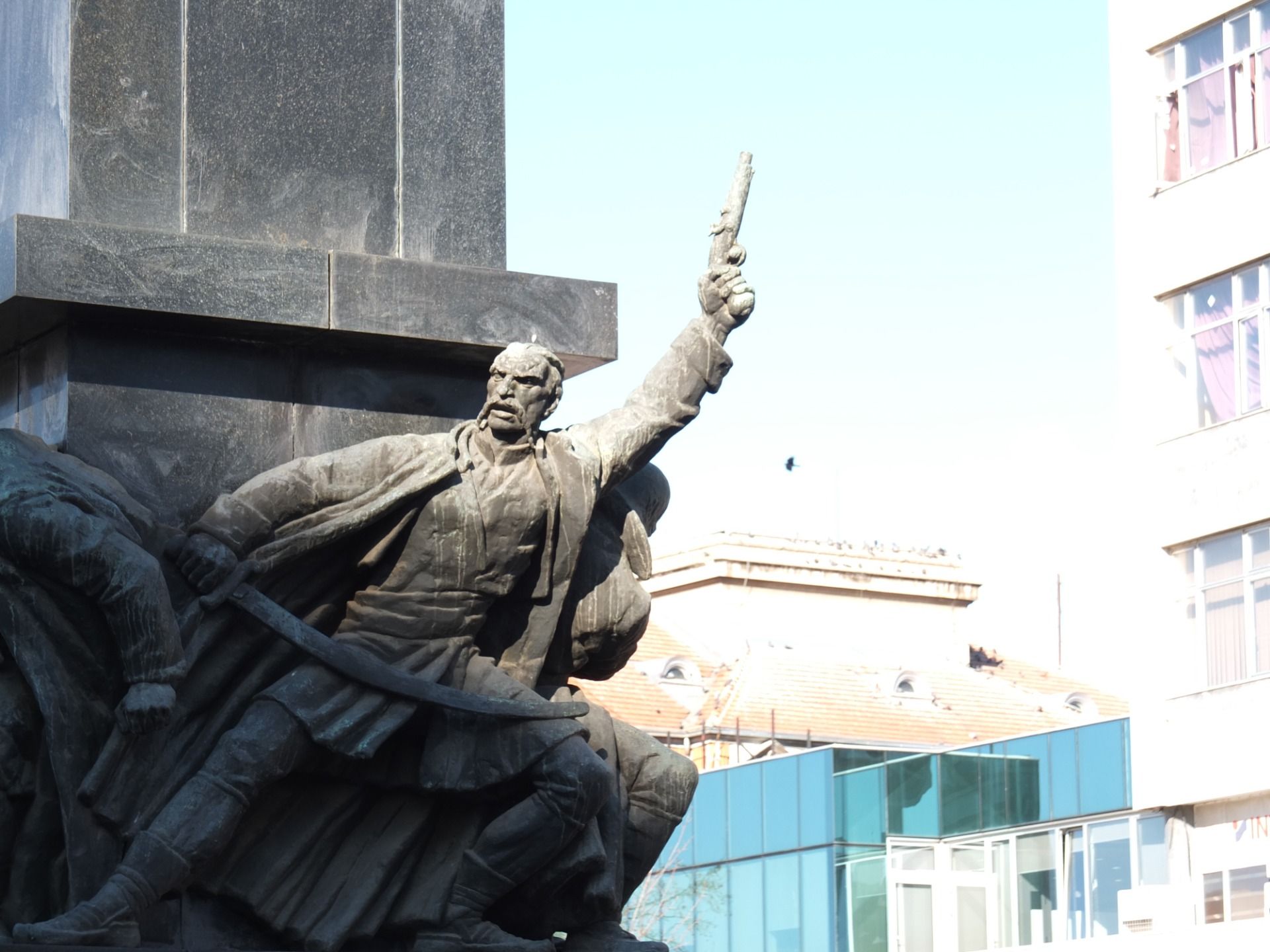 On the other side of the castle there is the city square with the statue of a military leaders and liberators of Niš daring back to 1915. If my assumption is correct it would be liberation from the Ottoman empire.