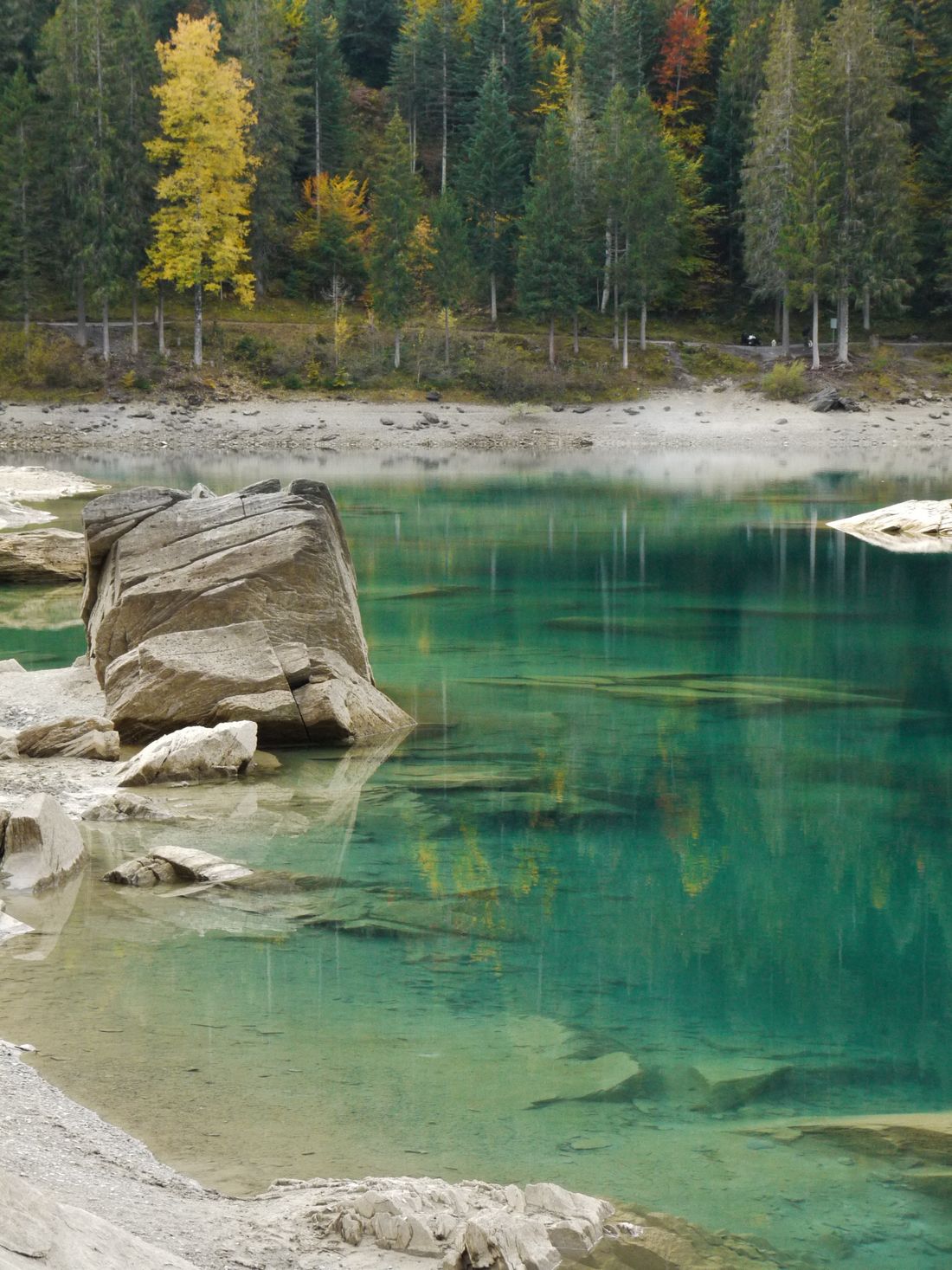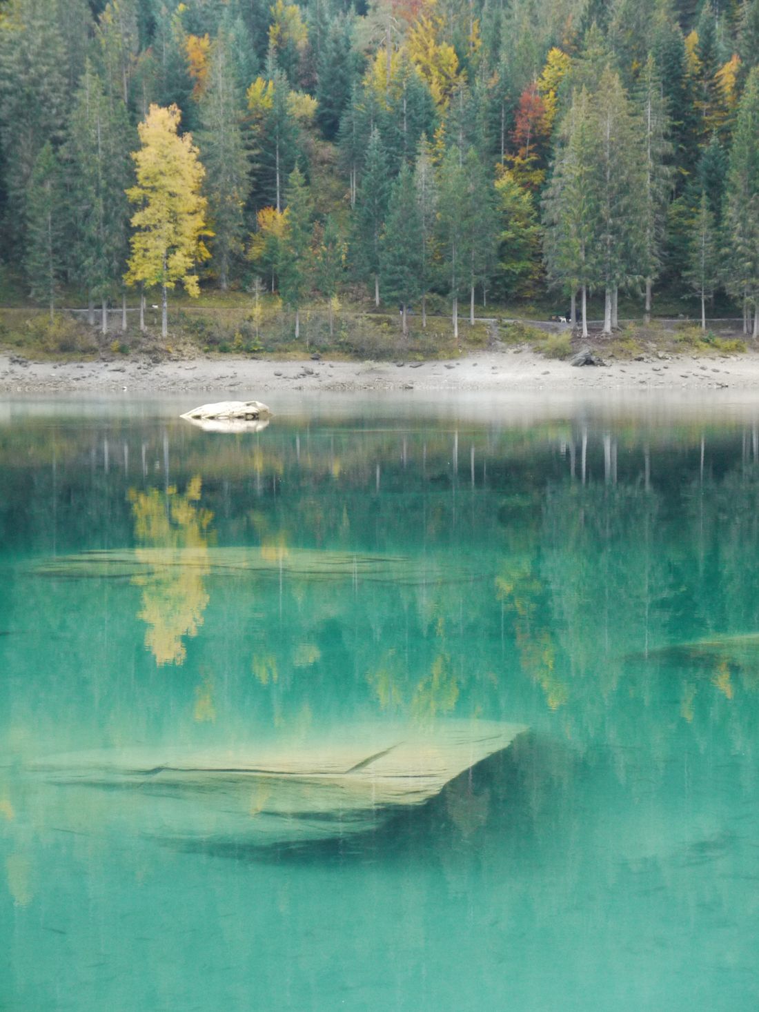 There are many ways to the lake, as it sits at the bottom of the valley. I always take a different path with my mountain bike, to make even the way to the lake special. But today, pushed by a bad weather forecast, I took the fastest one, providing no views over the lake. Nevertheless, being Autumn, the forest with all the colours looked amazing.