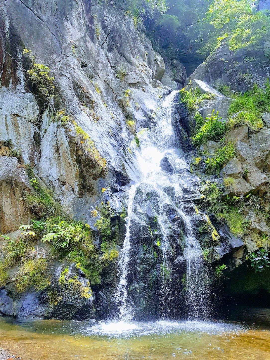 After a very strenuous walk back up, with the aid of a bamboo pole, the walk meanders up and down the hill sides over the open countryside before returning to the village of Moinhos, through a park area that features a beautiful waterfall and gardens. There's a water fountain there as well to fill up your bottle, which provides naturally carbonated spring water, a first for me...
