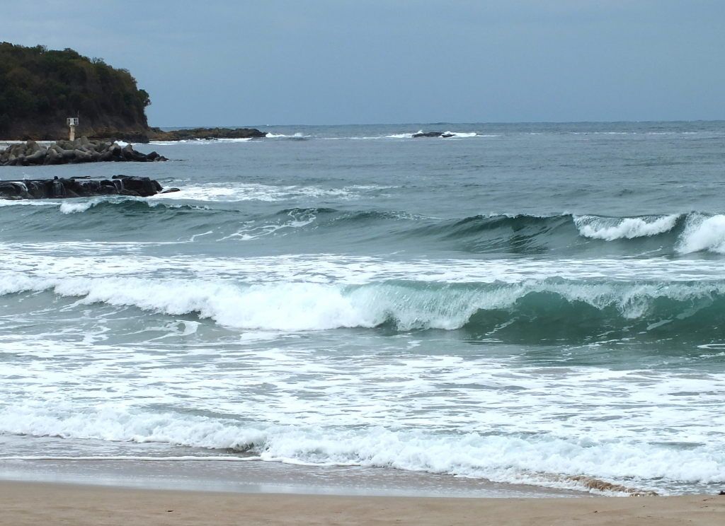 Arriving we stayed down at the beach again. In the evening the sea was dark gray, unsettled and angry with the wind. But next morning it was calm and when we saw dolphins swimming in the bay we knew it will be good to visit this time.