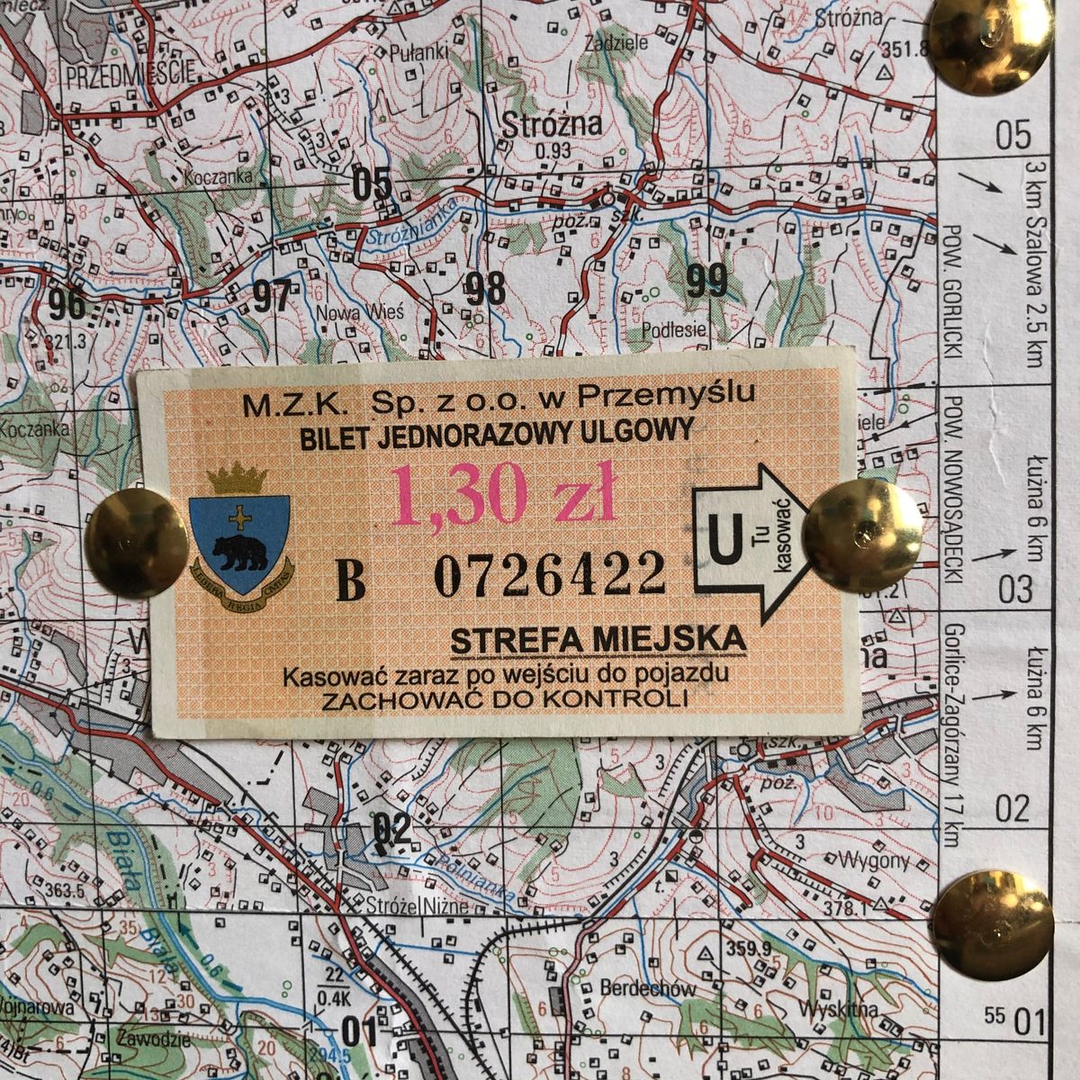 Kierujemy się dalej na wschód. W Przemyślu po raz pierwszy byłem w 2008 roku, trudno mi jednak określić, z którego wyjazdu jest ten bilet. Przemyśl, podobnie jak Rzeszów spokojnie można przejść pieszo. Miasto jest bardzo ładne, ale trochę zaniedbane, co wynika z peryferyjnego położenia (Przemyśl podobnie jak Tarnów w 1999 roku stracił status miasta wojewódzkiego).