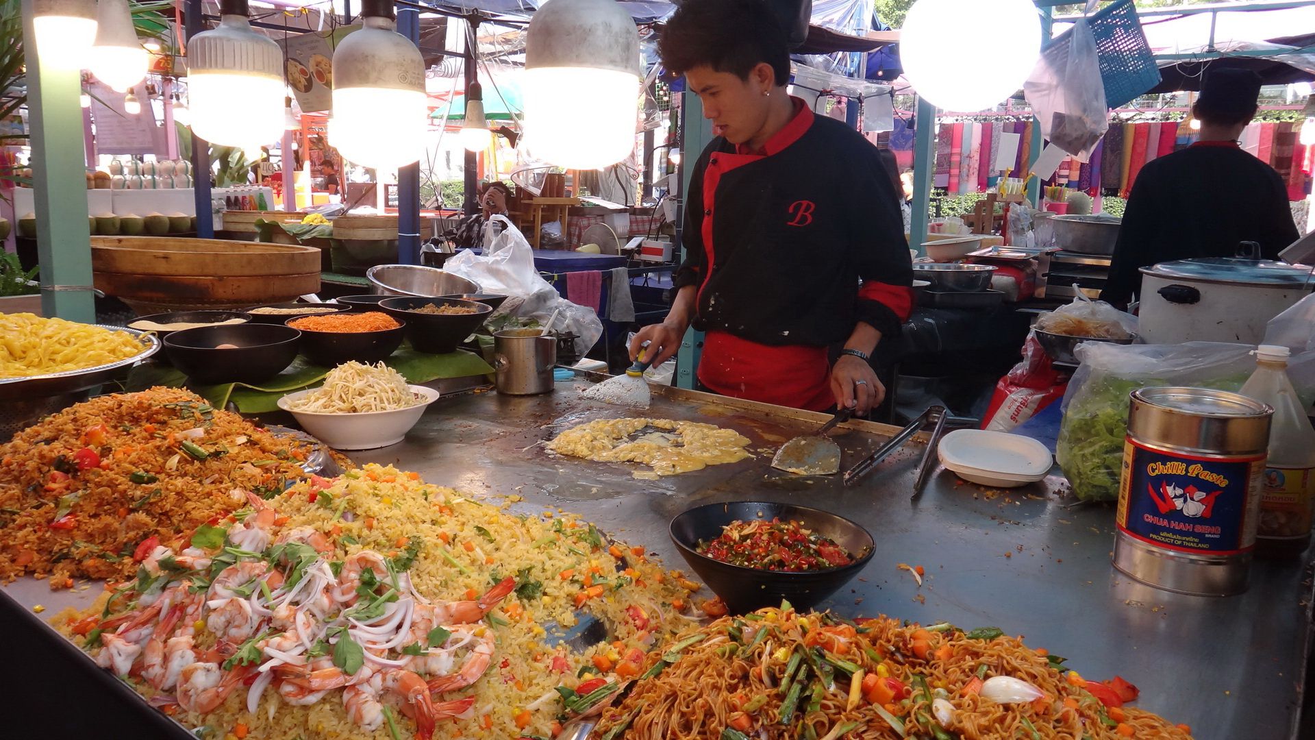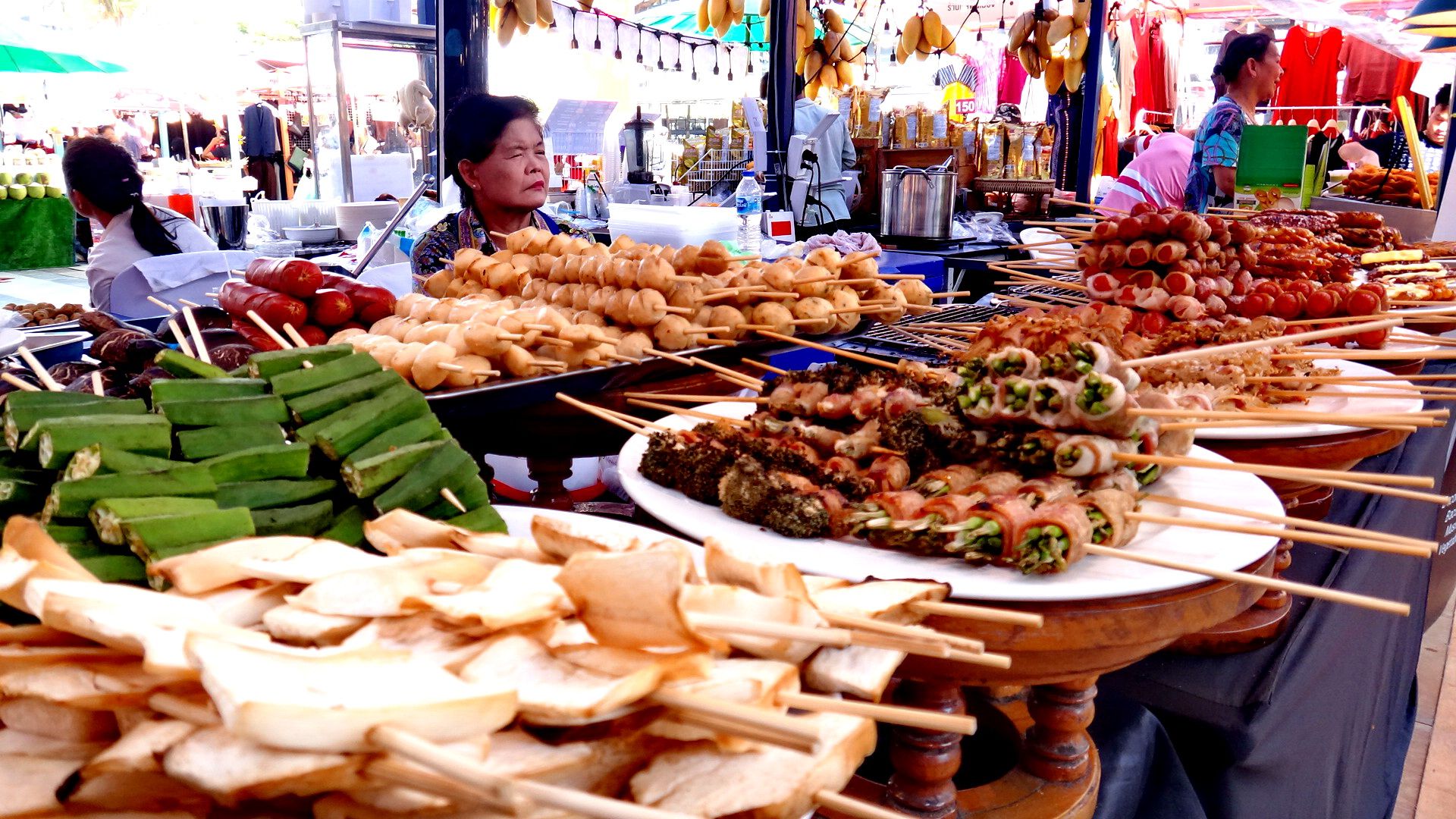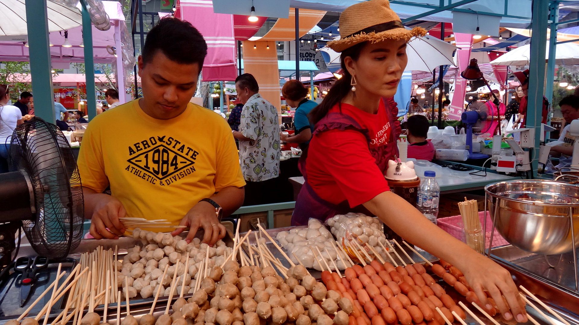 The choice of food on the stick is very popular in Thailand and the variety is in abundance it can be chicken , pork , beef , sausages , seafood and even veggies on the stick like mushrooms , broccoli , mixed in with a sausage wrapped in bacon if you like all on a stick how awesome and with what even sauce you prefer hot , mild or sweet.