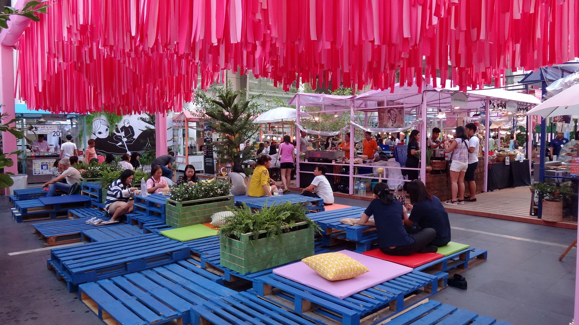 And there are no storage on room that they provide to sit down and enjoy your meal with a nice cold natural juice some spots are very nicely set up in a trendy way i like the idea of these colored pallets pretty cool idea easy and cheap but looks great.