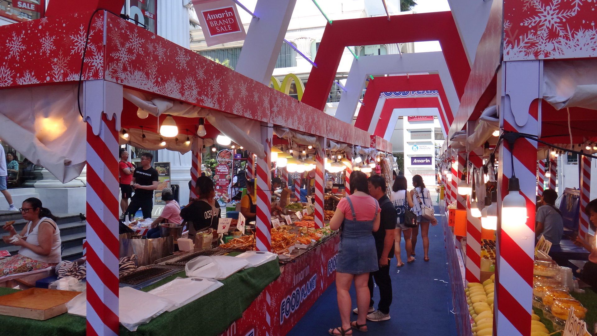 I quite like the Amarin Mall it is not a huge mall compared to the others but it always puts on a lovely display it thinks about everyone including kids and it's always colorful and picturesque great for taking photos and the other thing it always has little snack bars out the front great street food and fruits just for that little break before you move on.