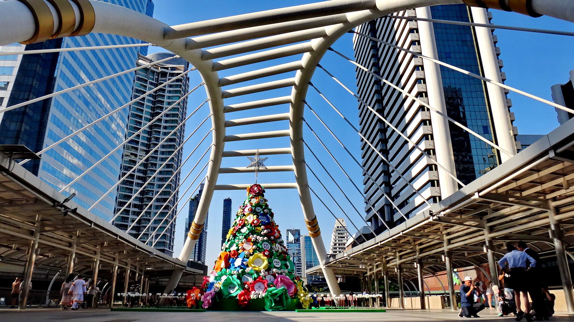 And that was my day done with shopping malls so on the Skytrain i go heading home but one more stop before home and that was one train station before my apartment i just to stop here as a tradition i always take a photo or two of the Christmas tree on the Chongnonsi walkway bridge it's my favorite walkway bridge with great views all round.