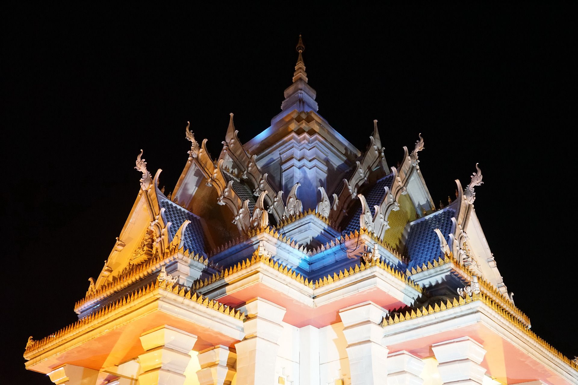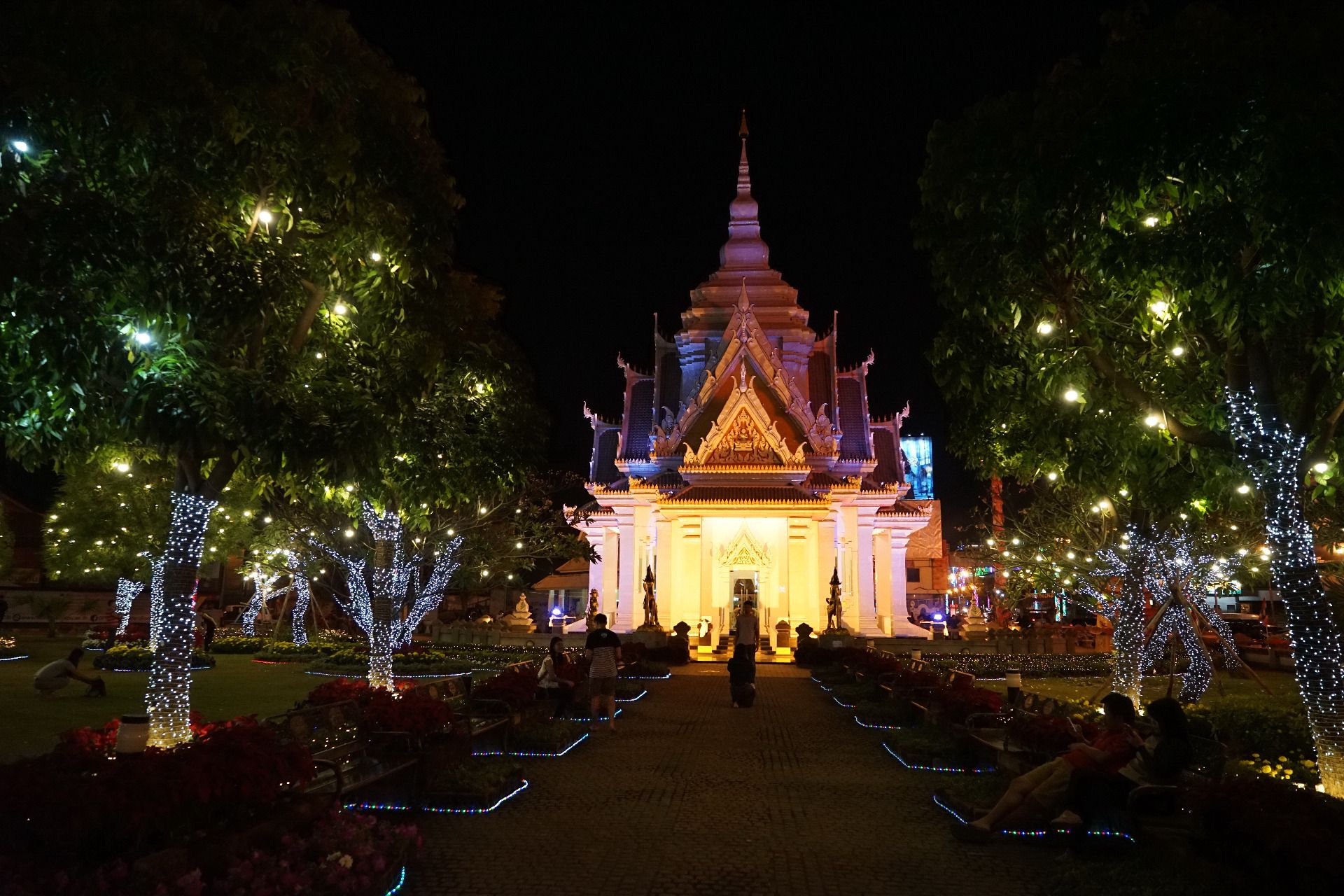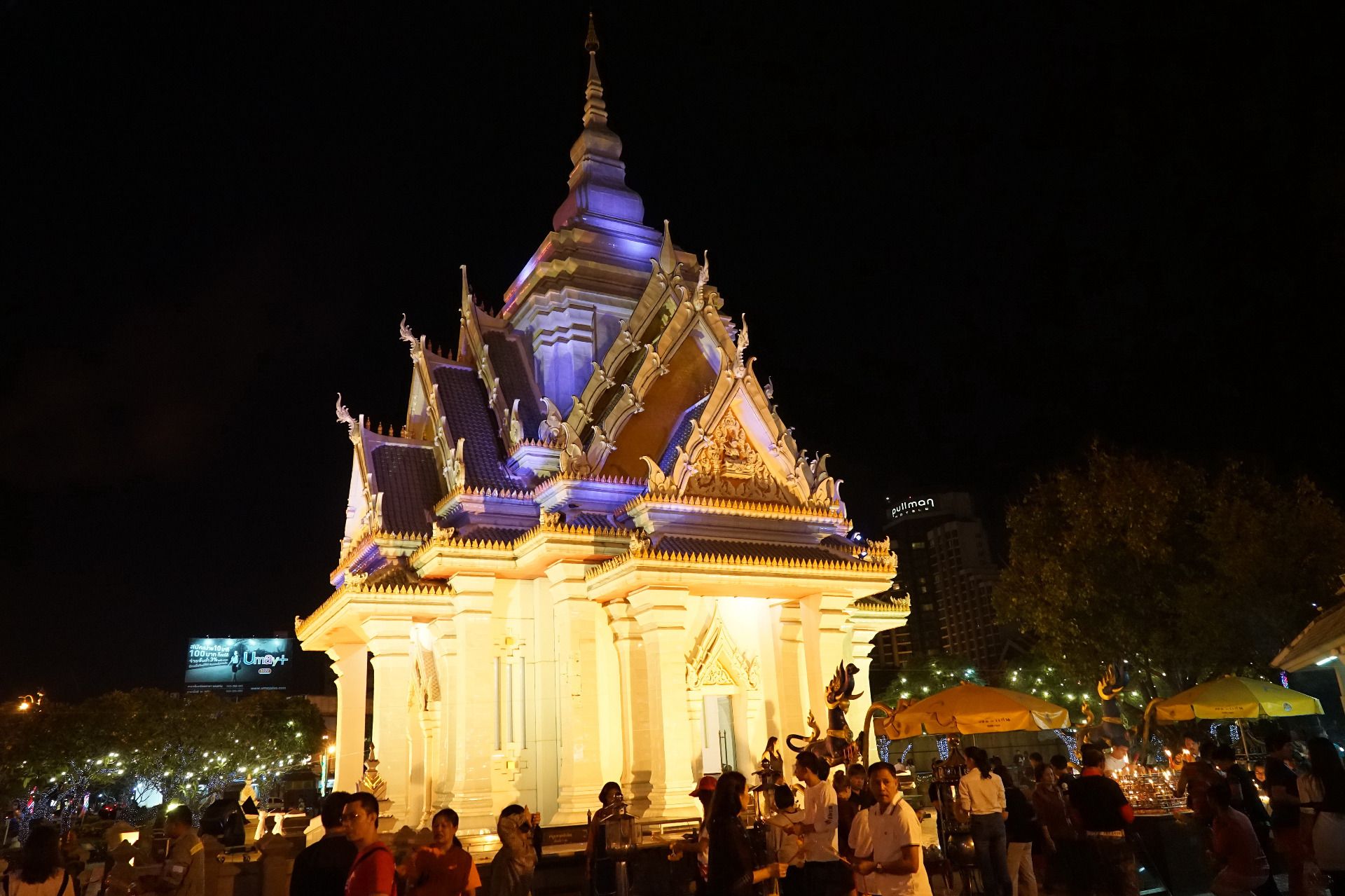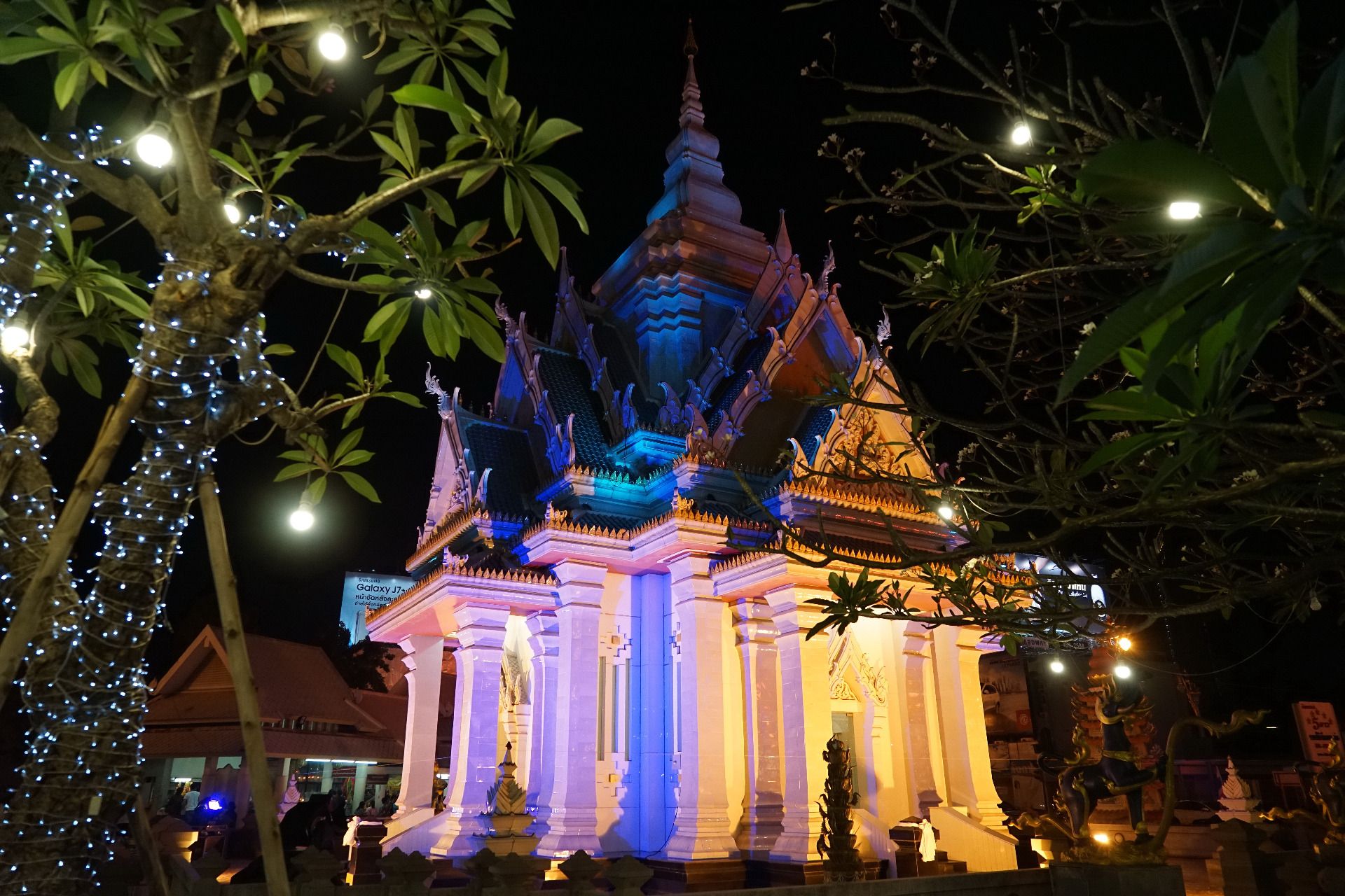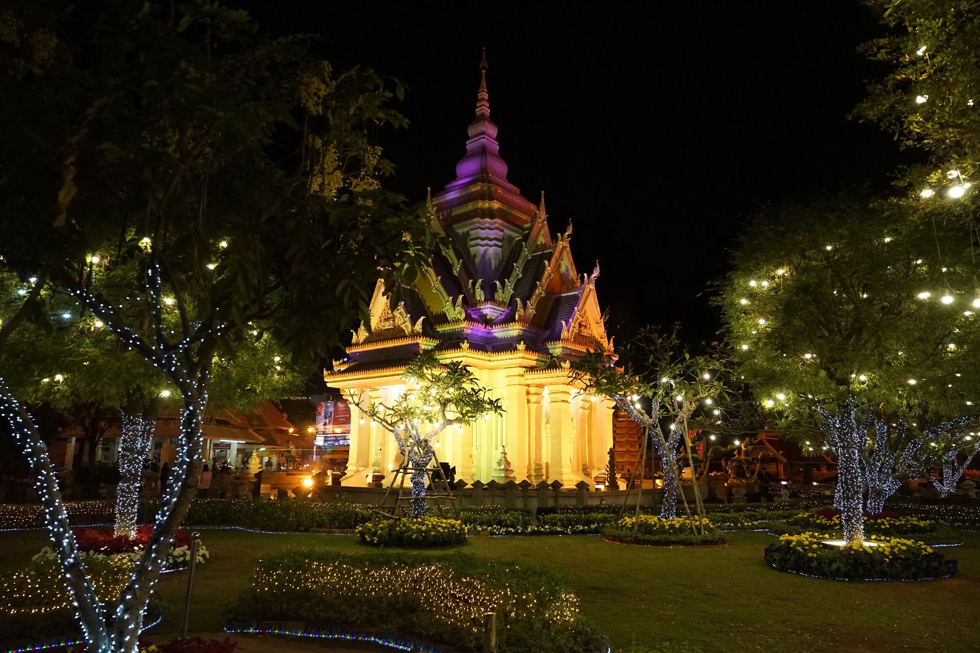 This is main city shrine which is also walking distance from the Central Plaza mall , here all the Thais will come and pay there respects for good luck and fortune before heading home after all the nights events. I love the way the shrine changes color and the way the gardens are always so nicely manicure and decorated with these colorful lights.