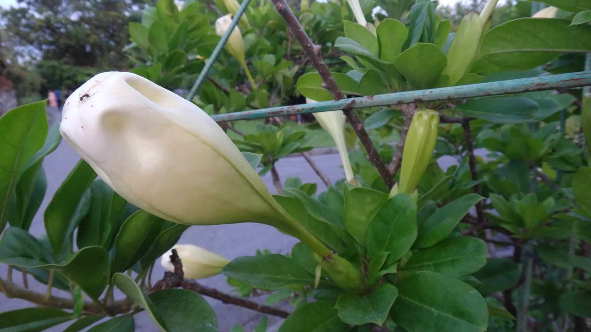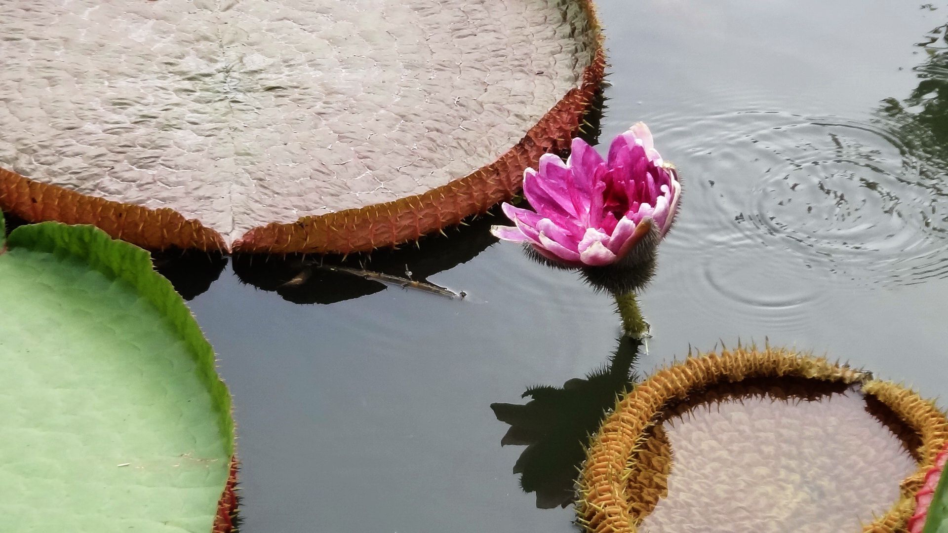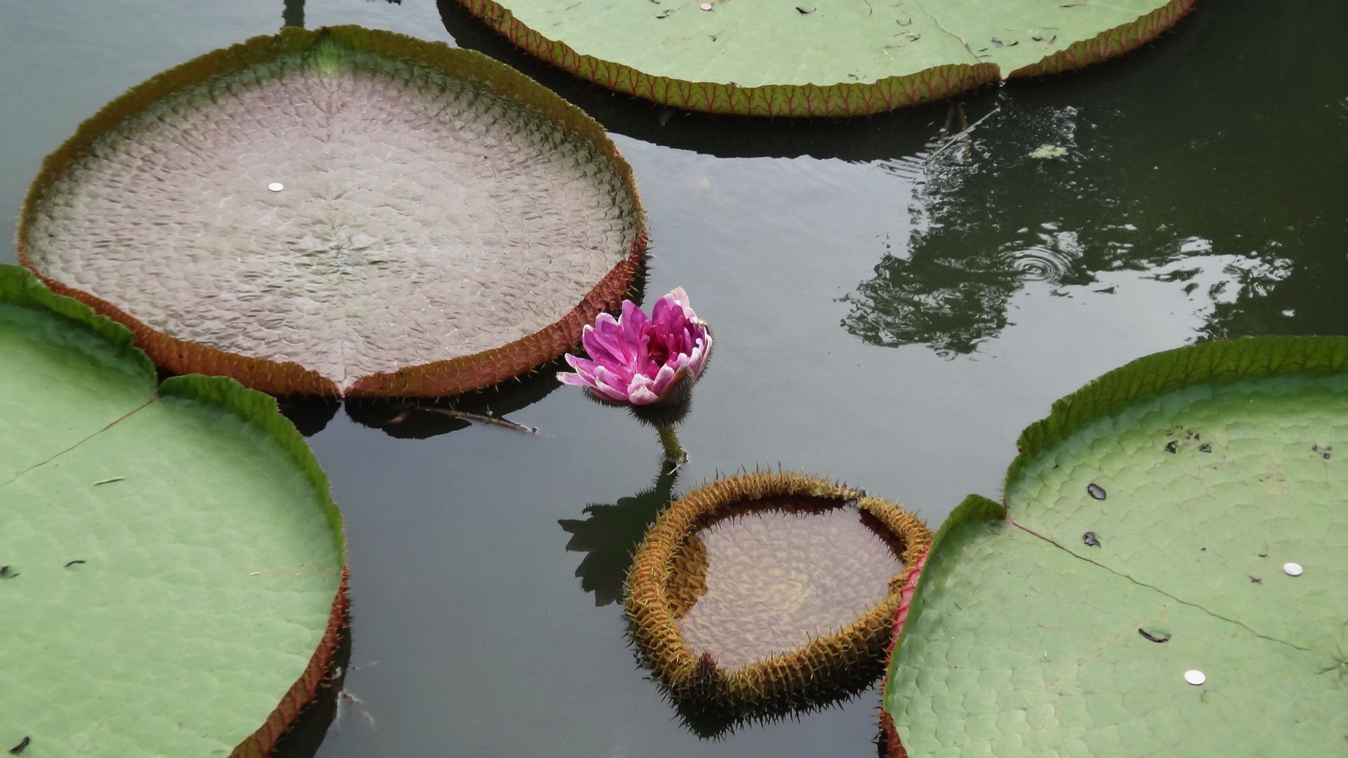 My favorite flower of the day was this huge pinkish lotus flower regarded as the most spiritual lotus in Thailand , Thai people offer money to this lotus in order of good luck and fortune you can actually see the coins that have been offered sitting on them huge green leaf plant.