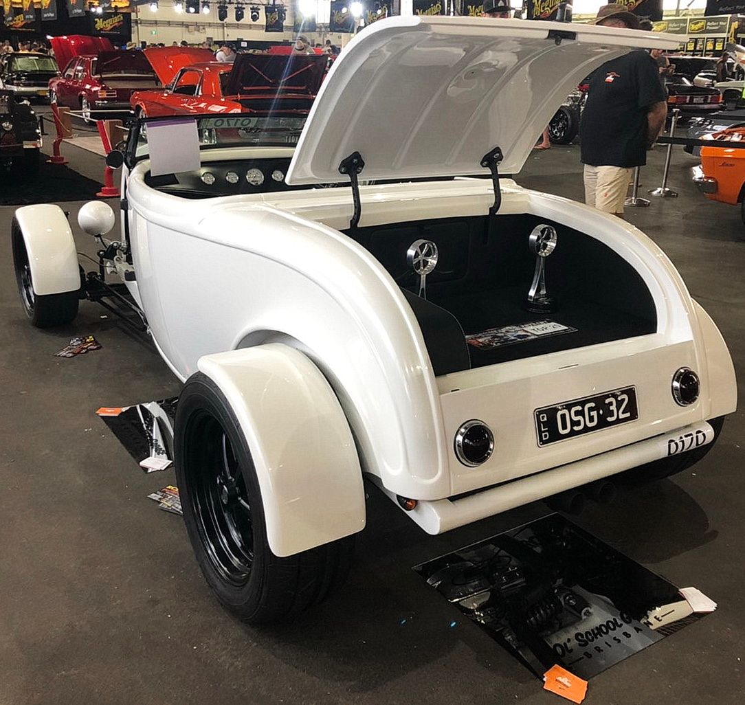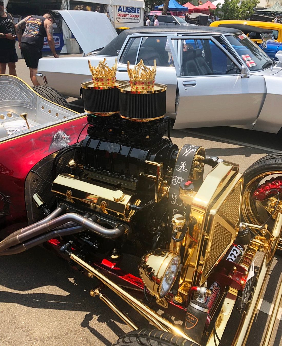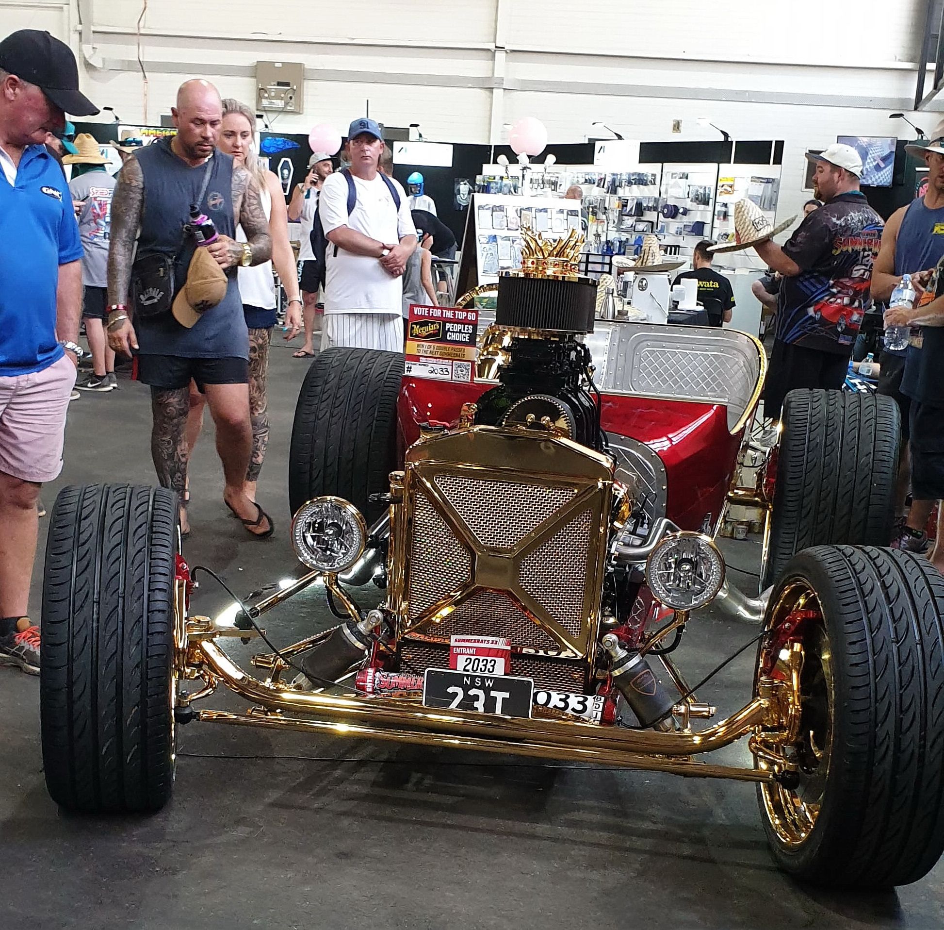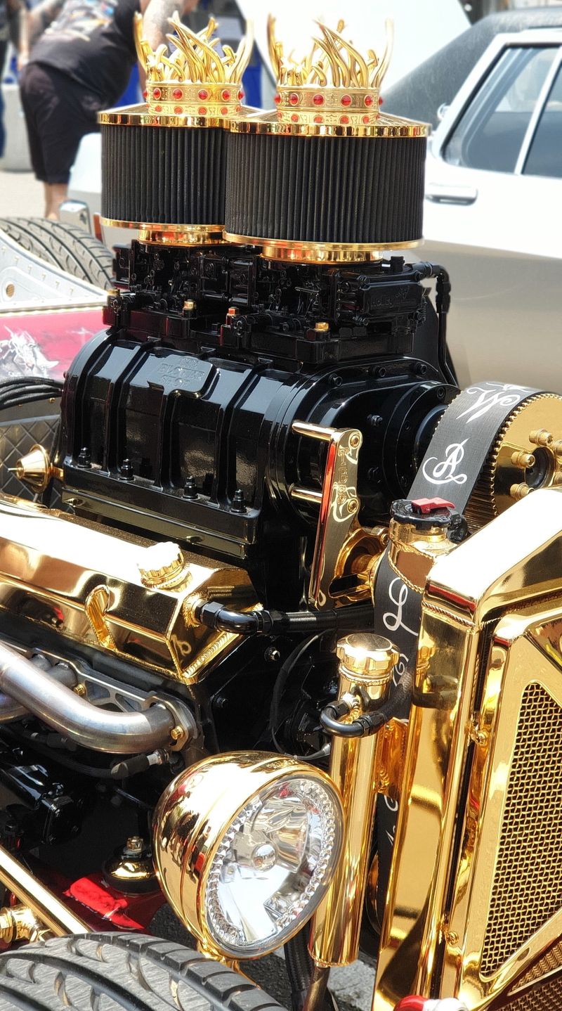 This T-Bucket Ford convertible was my favorite this year very nicely done with with gold plating worth a fortune powered by a 454 Chevy fitted with twin Carbs and Blower massive horsepower.