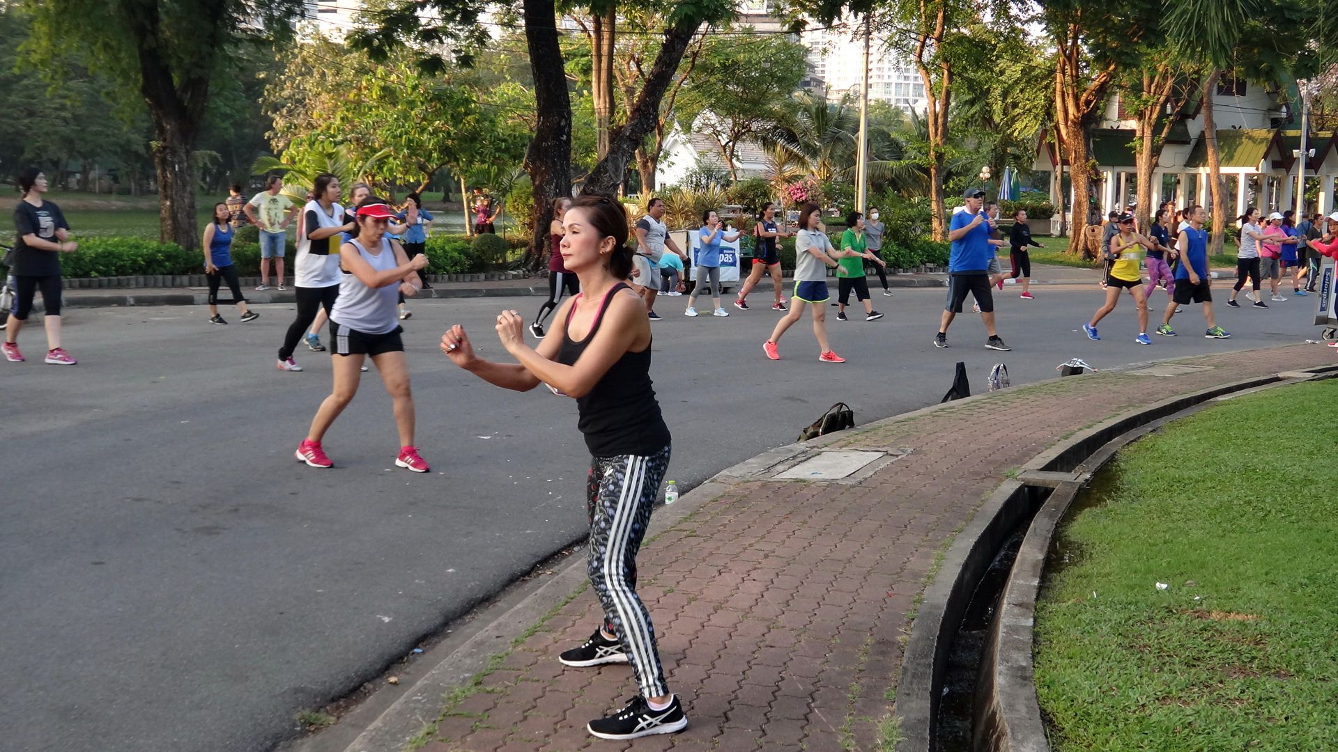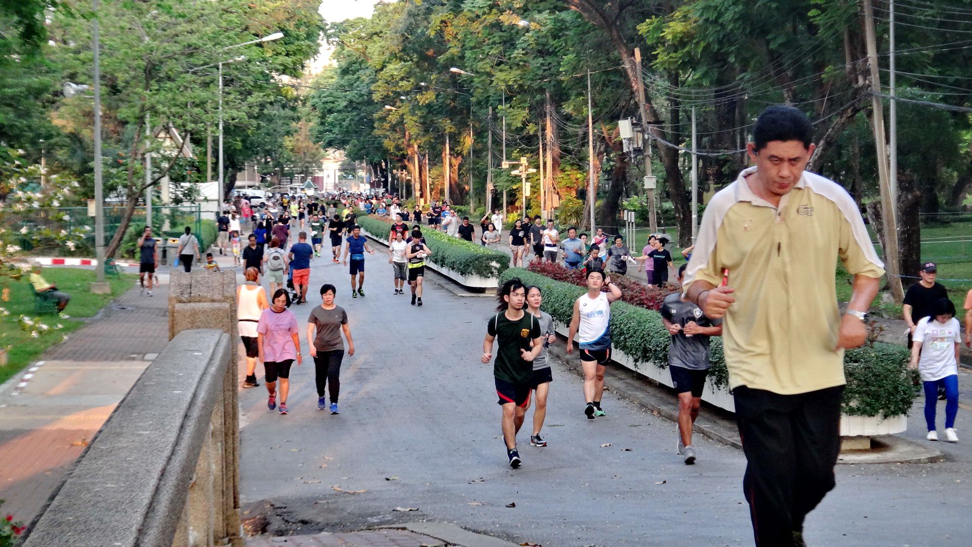 You will find many people there in the morning and afternoon either jogging , walking or doing aerobic classes.