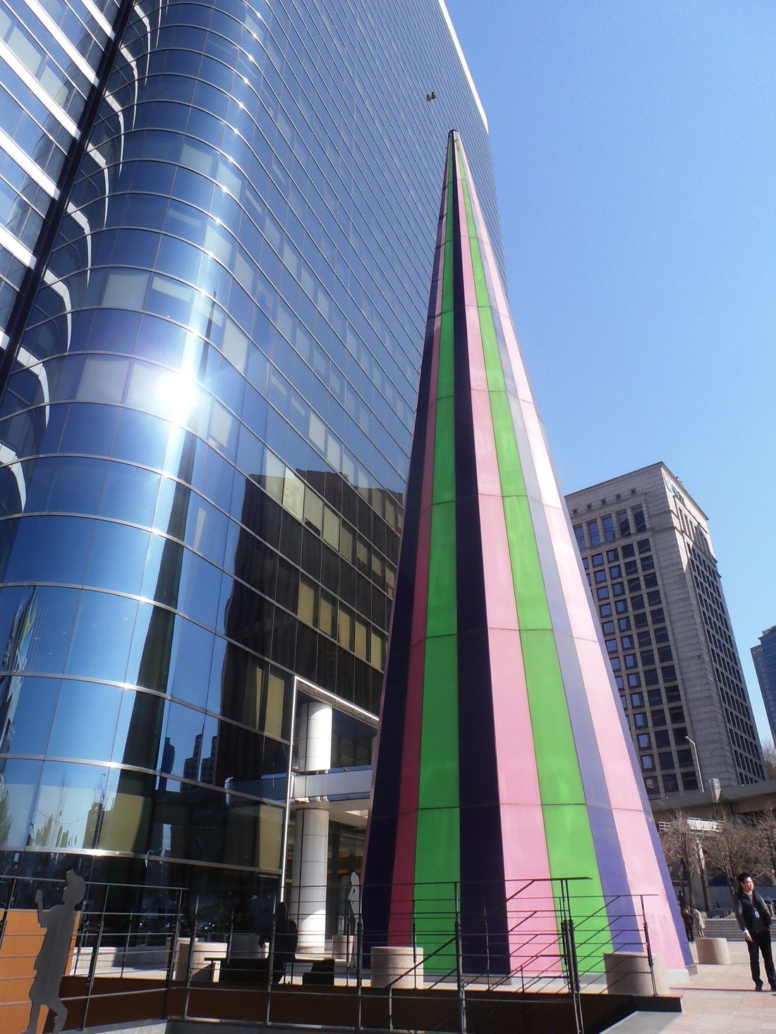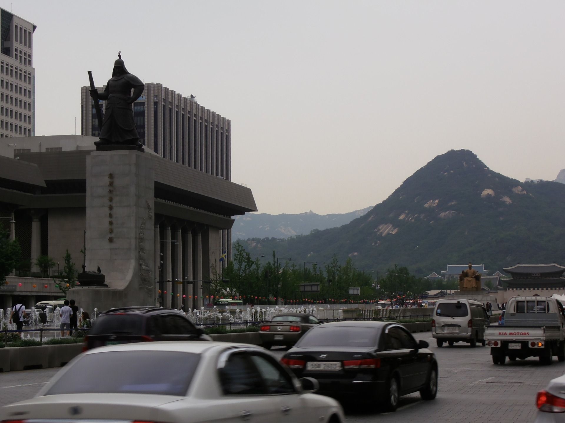 South of Sejong-daero lies the unusual shape of a gaudy modern art structure that marks the entrance to the Cheonggyecheon river, a daring urban renewal project that resulted in the excavation of a stream that has now become a beloved recreation area as well as a conservation one. From the ancient to the modern, the 600 metres of the Sejong-daero street also span hundreds of years of Korean history as a pedestrian area at its centre displays the statues of two prominent historical figures, the Great King Sejong who created the Hangul alphabet and Admiral Yi Sun-Shin, a cunning war hero celebrated for pushing back the Japanese navy trying to invade the country in the 16th century despite being outnumbered in most of the battles he fought.
