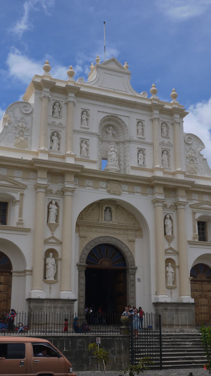 I finally reached the church, whose main façade stood in all its white and yellow Baroque glory by the side of the Calle Poniente. In its center stood the statue of Our Lady of Mercedes, hence the church’s name. La Iglesia de la Merced had miraculously been spared by the 1773 earthquakes, as it had been specifically designed to withstand tremors, which hadn’t prevented its treasures and altars to be moved from Antigua to Guatemala City in the 19th-century.