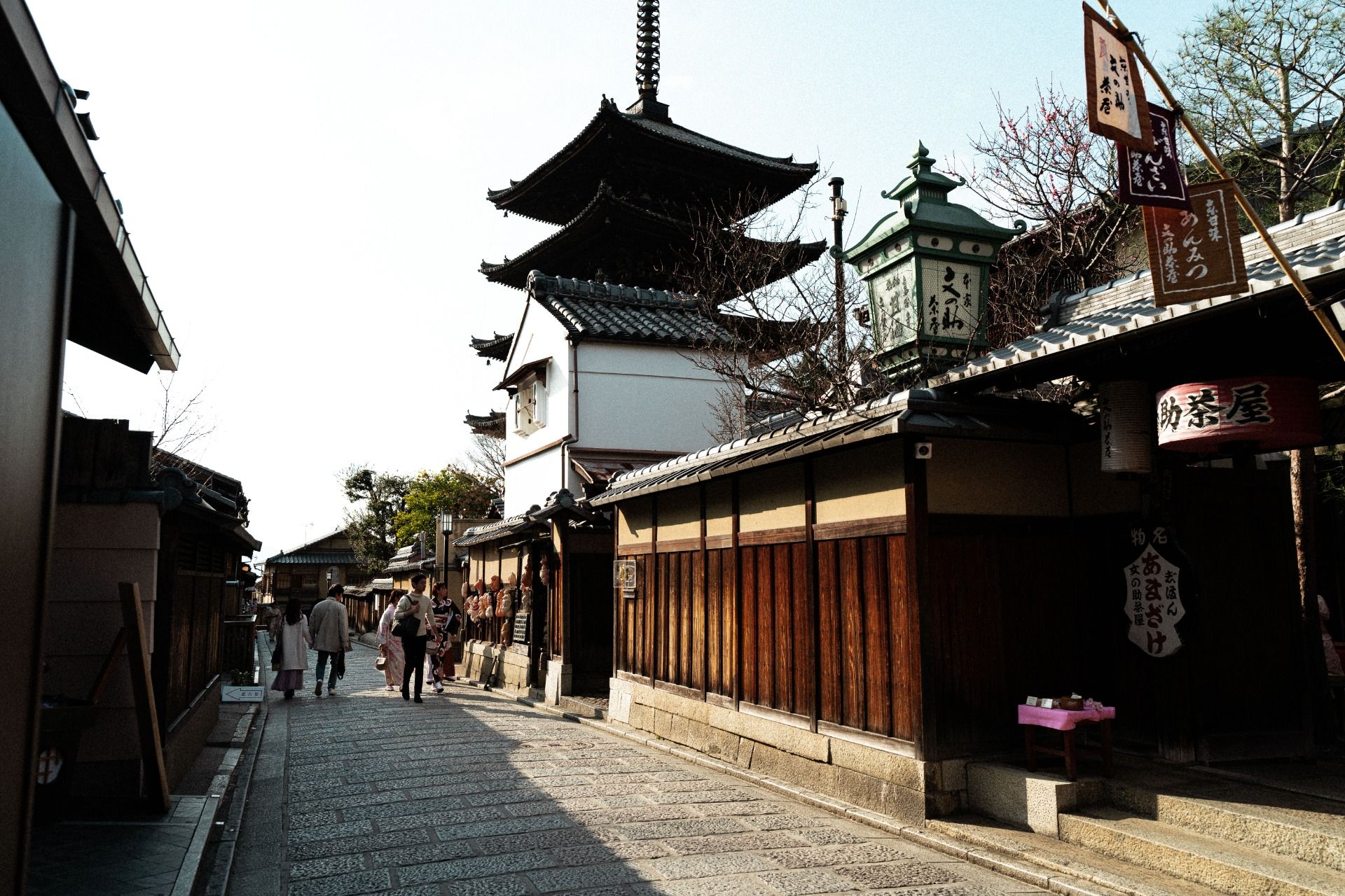 With our pink sakura-flavored mochi in one hand and a much less traditional bottle of Coke in the other, we began wandering around Sannenzaka. The area was exactly as we expected it to be, a little gem of well-preserved, homogeneous traditional architecture in the heart of the city. Japanese cities were usually a surprising, if a bit weird, combination of concrete buildings, neon signs and electric wires right next to historic, old temples and tiny wooden houses so it felt like a nice change of pace to be walking around this uniform, picture-perfect setting. A touch of the contemporary was never too far though, from the Starbucks sign hanging from an ancient house to the numerous vending machines that were so widespread in any modern Japan city.