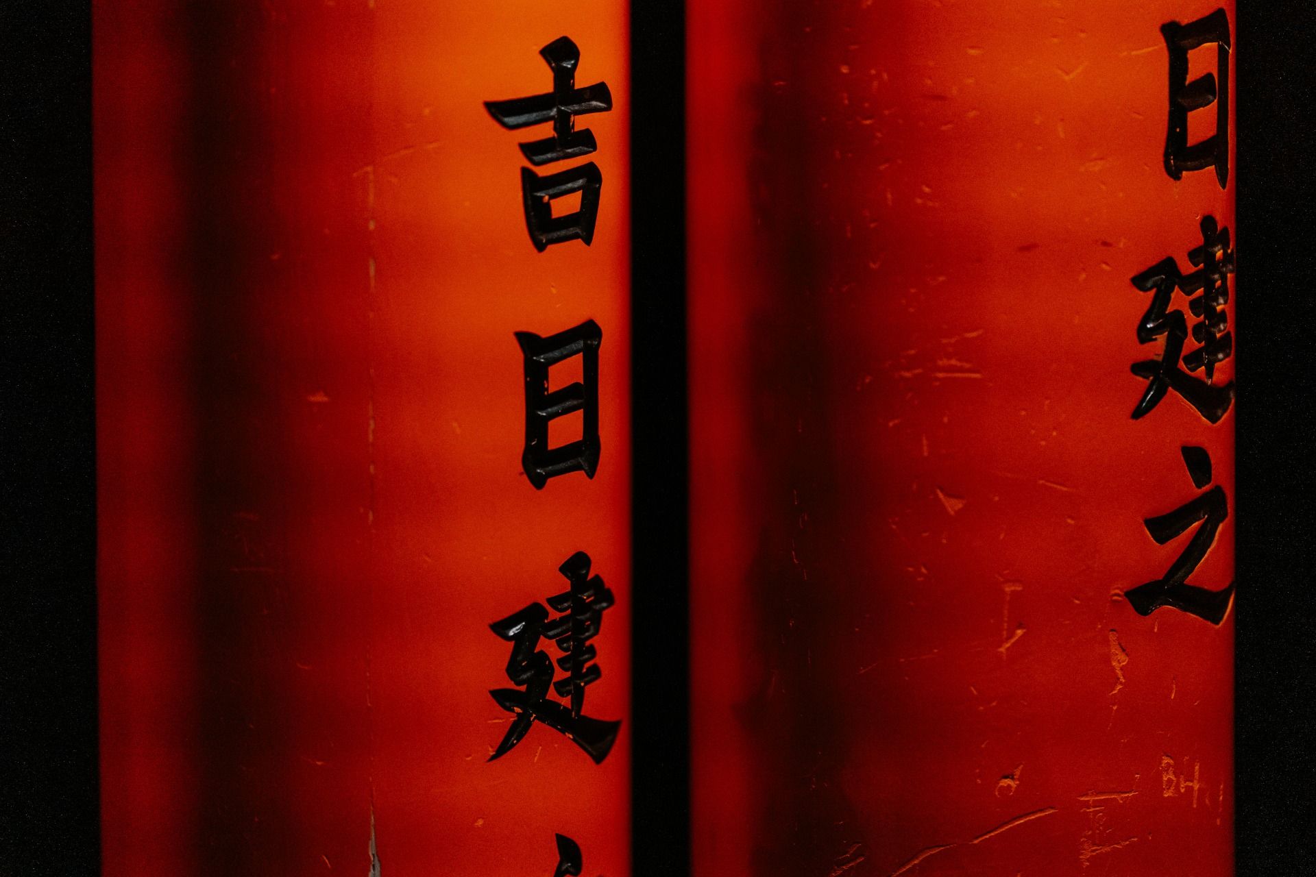 Lanterns were hanging on top of some of the toriis but most of them were plunged into