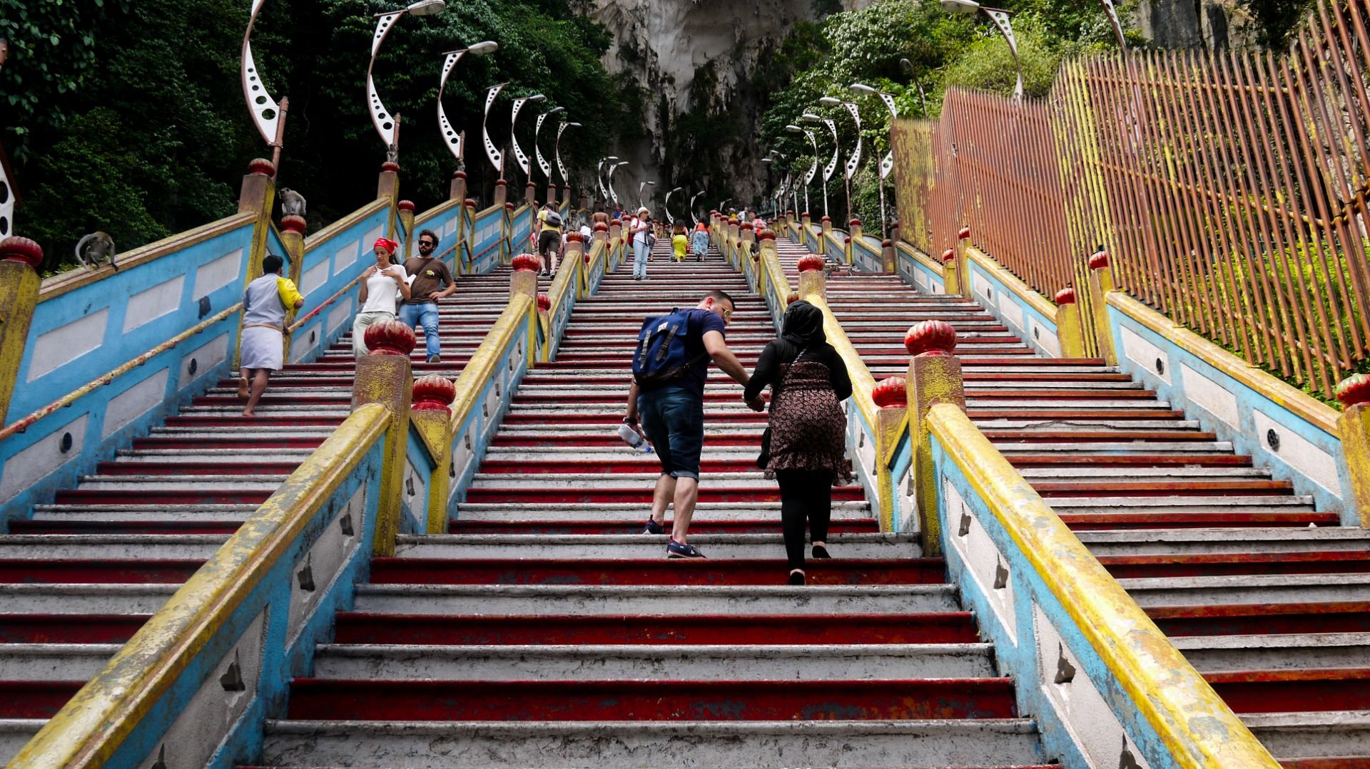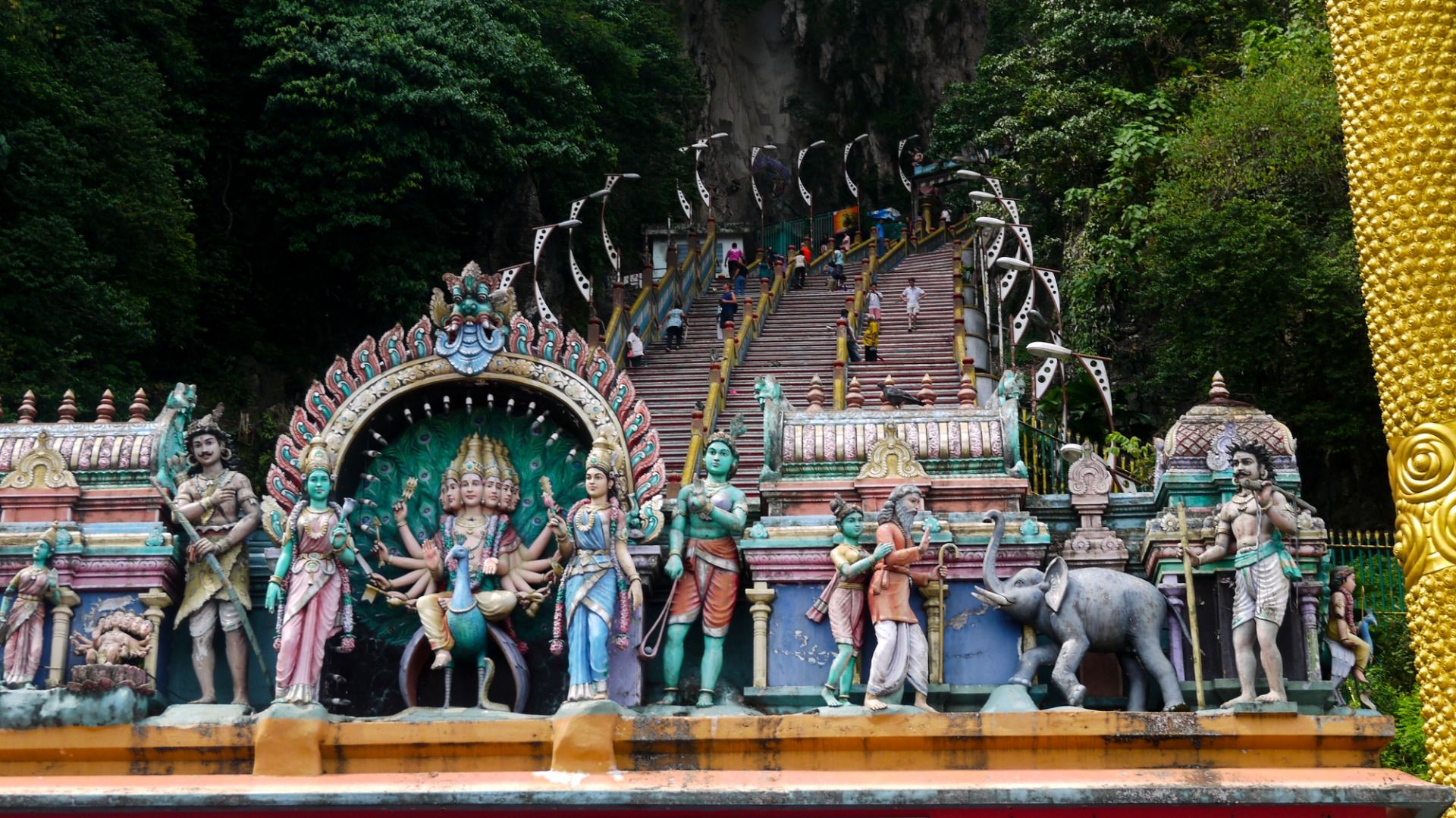 The magnitude of the caves was what struck us first but even more, it was the size of the golden statue that stood guard in front of the caves that astounded us. As impressive as it looked and as tall as it was, being the world’s tallest statue of the Hindu deity Murugan, the statue was a new addition to this religious complex as it had only been unveiled in 2006.