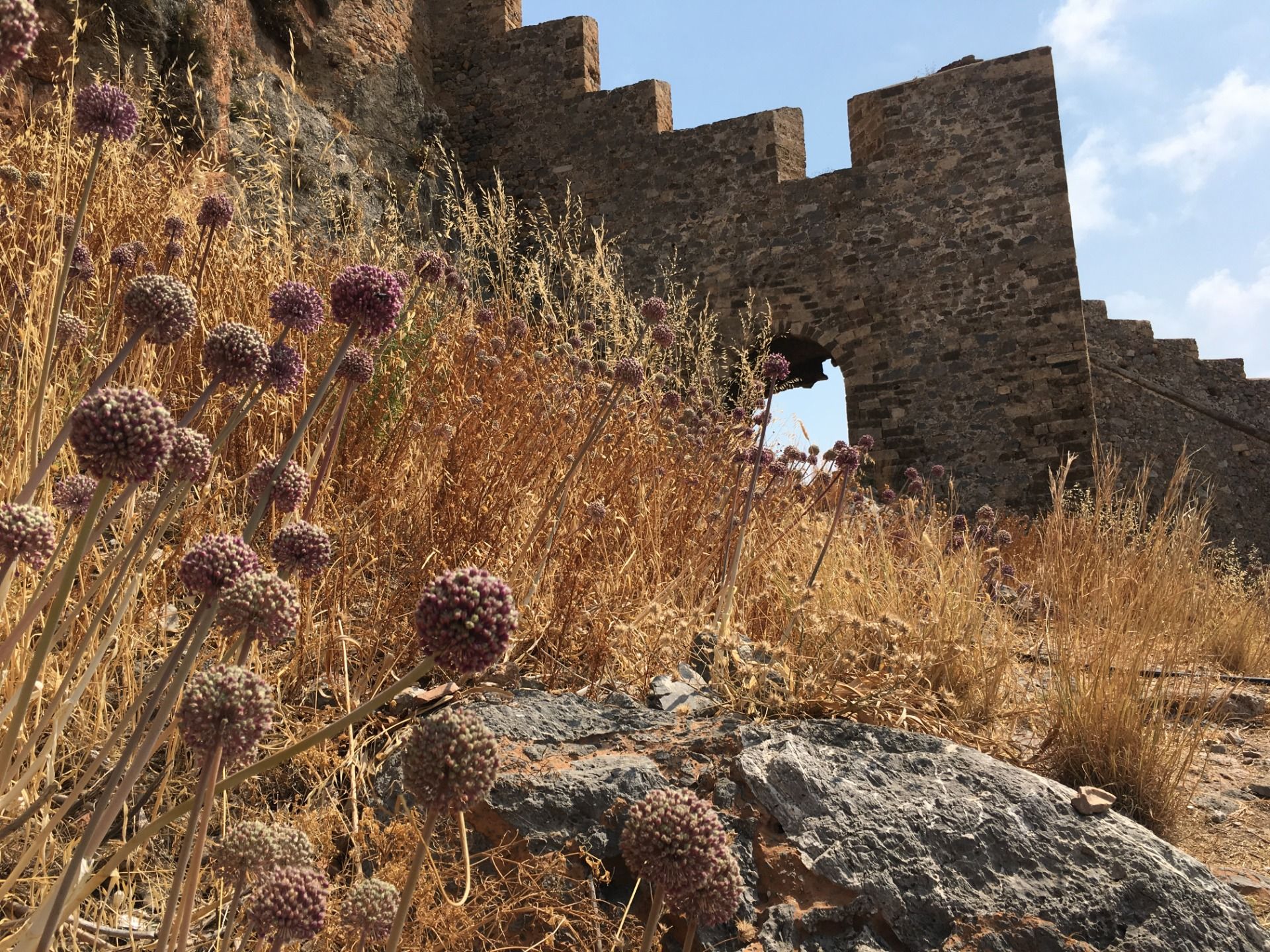 An even better view awaited at the top of the rock, along a walk up hill leading to the ruins of the Agia Sophia Church. We had been climbing fortress upon fortress for three days in a row though, which was fine by me, but was a bit harder to swallow for Hedi. I eventually gave up in exchange for the promise of a fulfilling lunch made of gyros and Greek salad and even had to consent to an afternoon by the sea, as the shores near Monemvasia weren’t extremely fit for swimming.