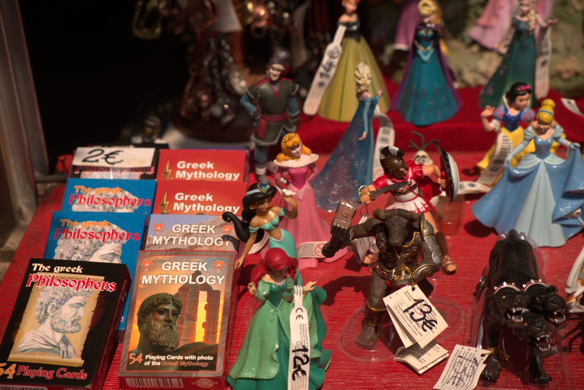 Of course, this feeling didn’t last long. There was no way it could have though as Monemvasia was a small place but it was far from deserted. The island sure was awake and it was already bustling with life, from those tourists enjoying a cup of coffee for breakfast on the terrace of their hotel to those already window-shopping, on the hunt for the perfect souvenir to bring back home among the many shops battling for their attention. It felt even a bit anachronistic to see Disney figurines on a shelf next to a deck of Greek mythology themed playing cards and a miniature of a Minotaur, although Monemvasia was perhaps trying to bridge myths of old and tales of our modern days.