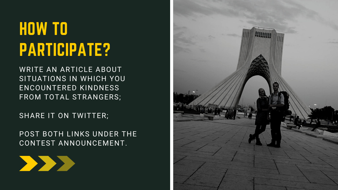 - Recommended title format: "Kindness I encountered from strangers while traveling: [your text here]"