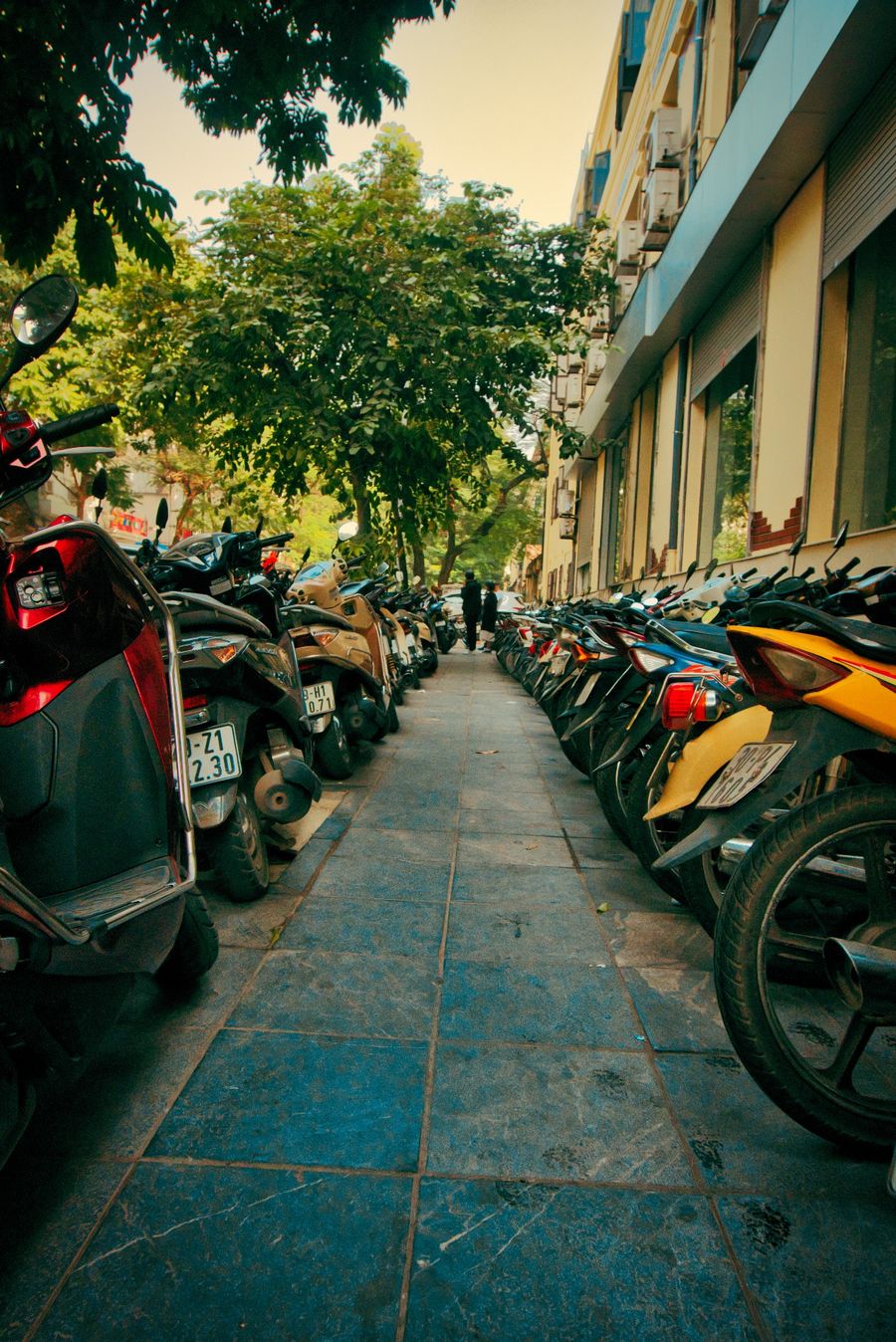 - This was a rare sight, motorbikes pared in a way you can walk on the sidewalk still!