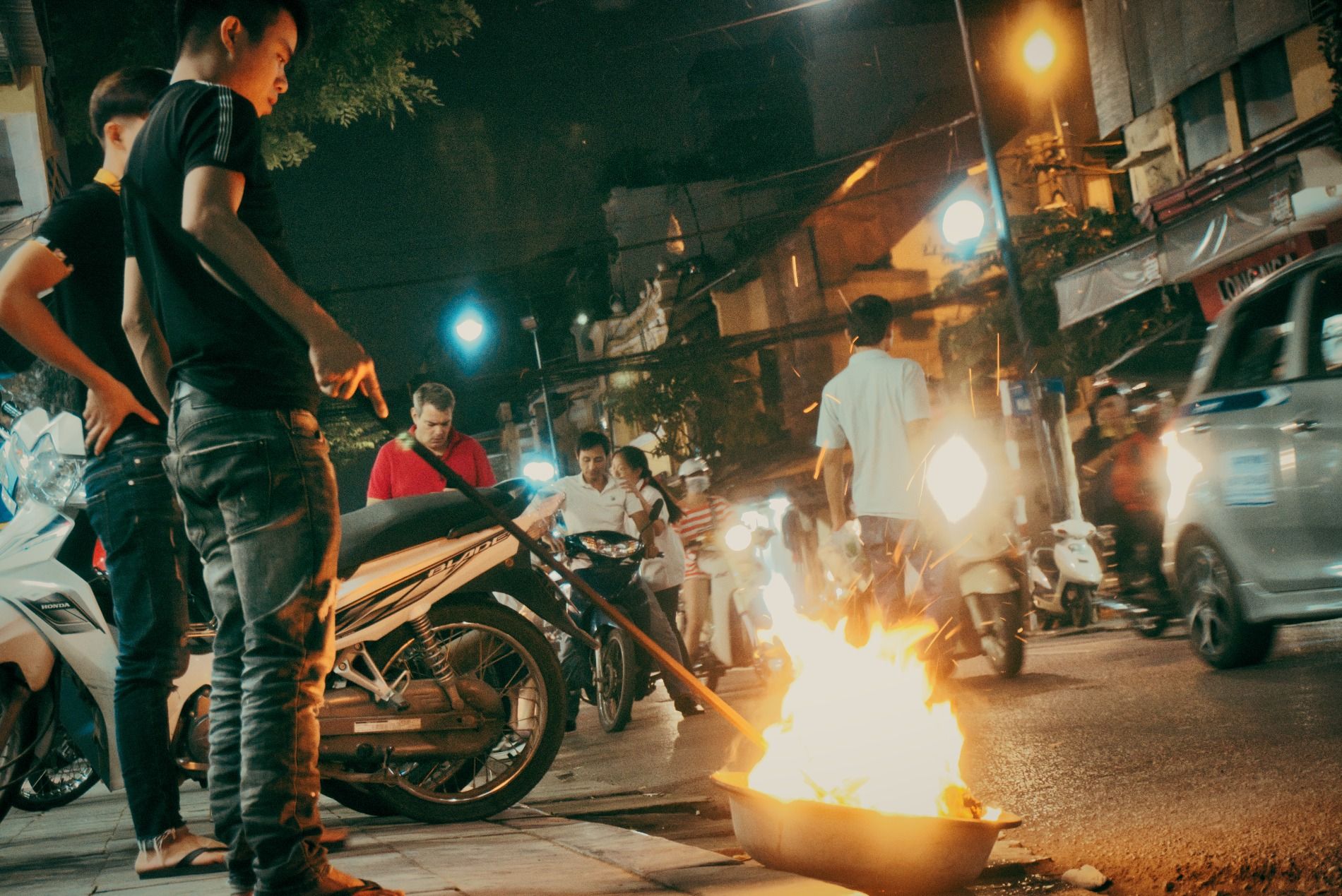 - Something that would never fly back home in the states, just people burning rather large fires of offerings for good luck in the street.