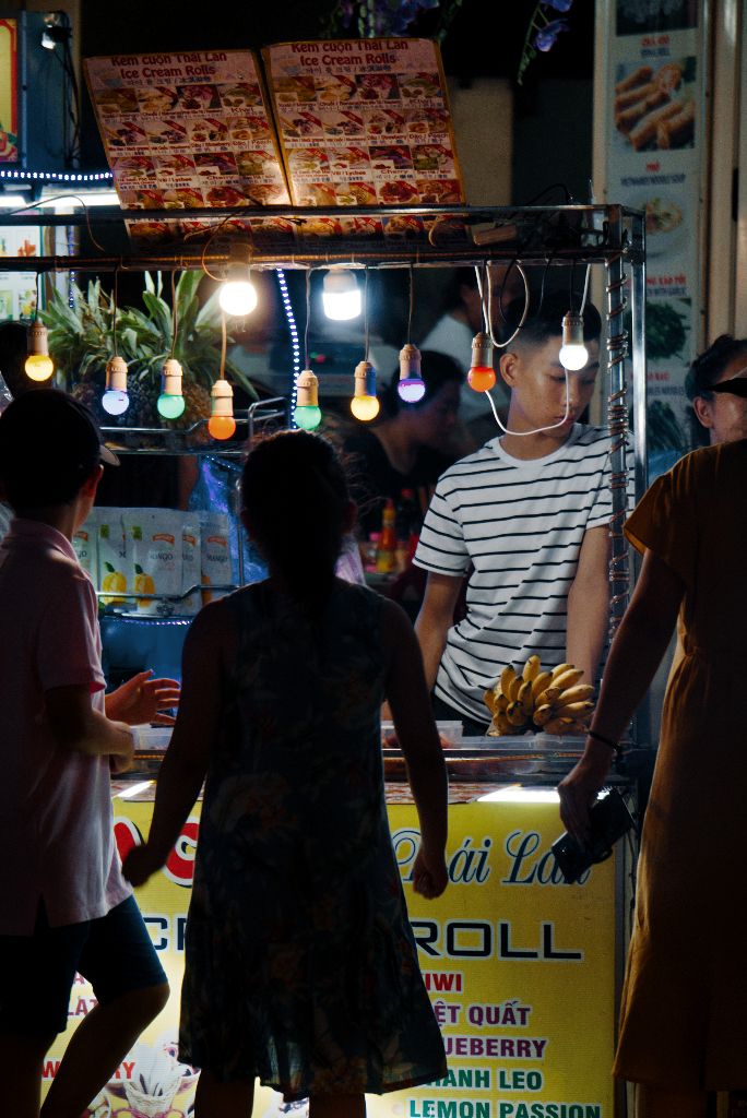 This evening I went out to adventure the roads after dusk to see what sorts of sorts, I could capture with my camera. Some of the highlights of this outing were seeings food vendors and just taking in the faces of the masses as they flowed past.