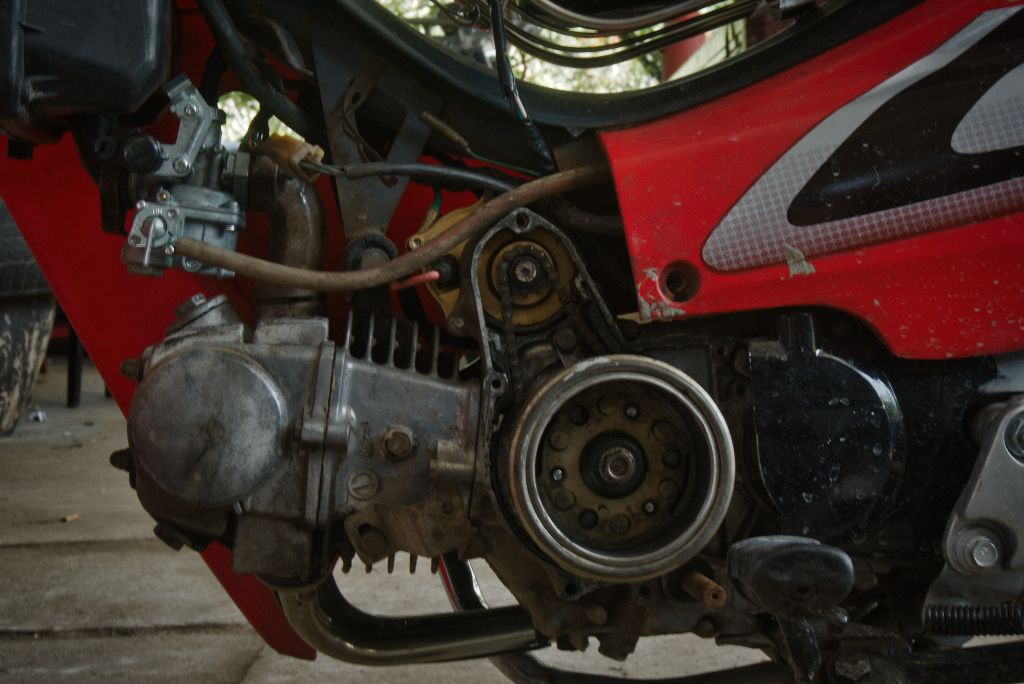 The starter of my bike all exposed. This was a Major Pain the ass.