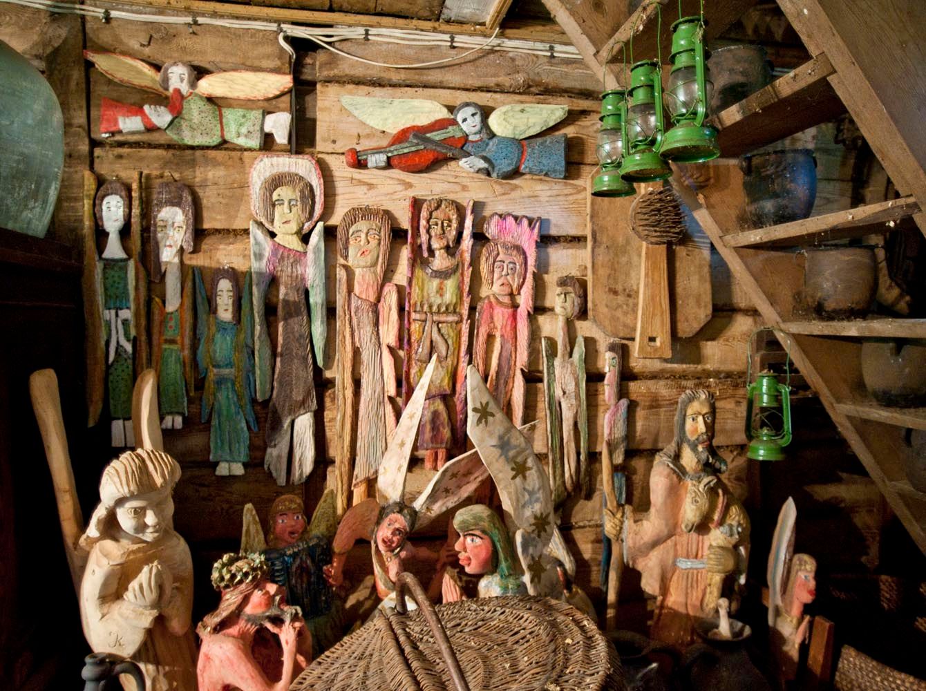 Years ago, Krzysztof ran an antique shop in the capital. It was in the antiquities trade that he earned enough to buy a farm on the Biebrza. Initially, he planned that this place would be visited only during the holidays. Over time, he decided to move to Bud permanently. Wife could not imagine such a life. They split up. When Mr. Krzysztof moved to Bad Biebrza, he immediately admired the local culture and history. He began collecting local works of folk art - especially sculptures by Dionysius Putra. His collection also includes everyday objects of the former Biebrza village. There are also many memorabilia related to the tsarist history of these areas.
