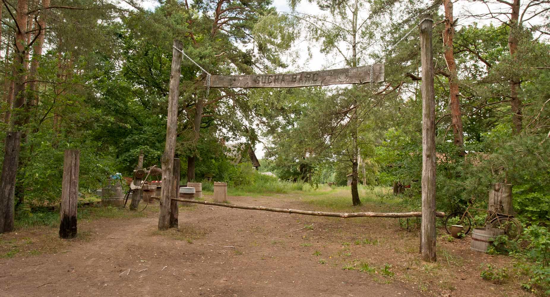 I get into the vehicle and follow the forest paths behind the car of the "King". After some time we turn into one of the alleys - I think to myself: "Good that I did not have to look for the way to his house myself, at this intersection I would not know where to turn". We reach the goal. The car park is a small forest clearing. Next to it there is a large kind of gate with the inscription "Sucha Barć". In the background you can see the landscape of the meadows of the Biebrza. We are going towards the river. A wooden house emerges from behind the trees. Next to it, an outbuilding with specific carvings on one of the walls. A farm nearby with several dogs - including several puppies. "The King" explains - "It's stupid, I took care of them." It turns out that someone abandoned small dogs in the woods. The problem is even greater because they require constant care and regular meals. That is why Mr. Krzysztof (name of "King") was so sad when I met him in Dobarz Court. The matter of the dogs doesn't leave him alone.