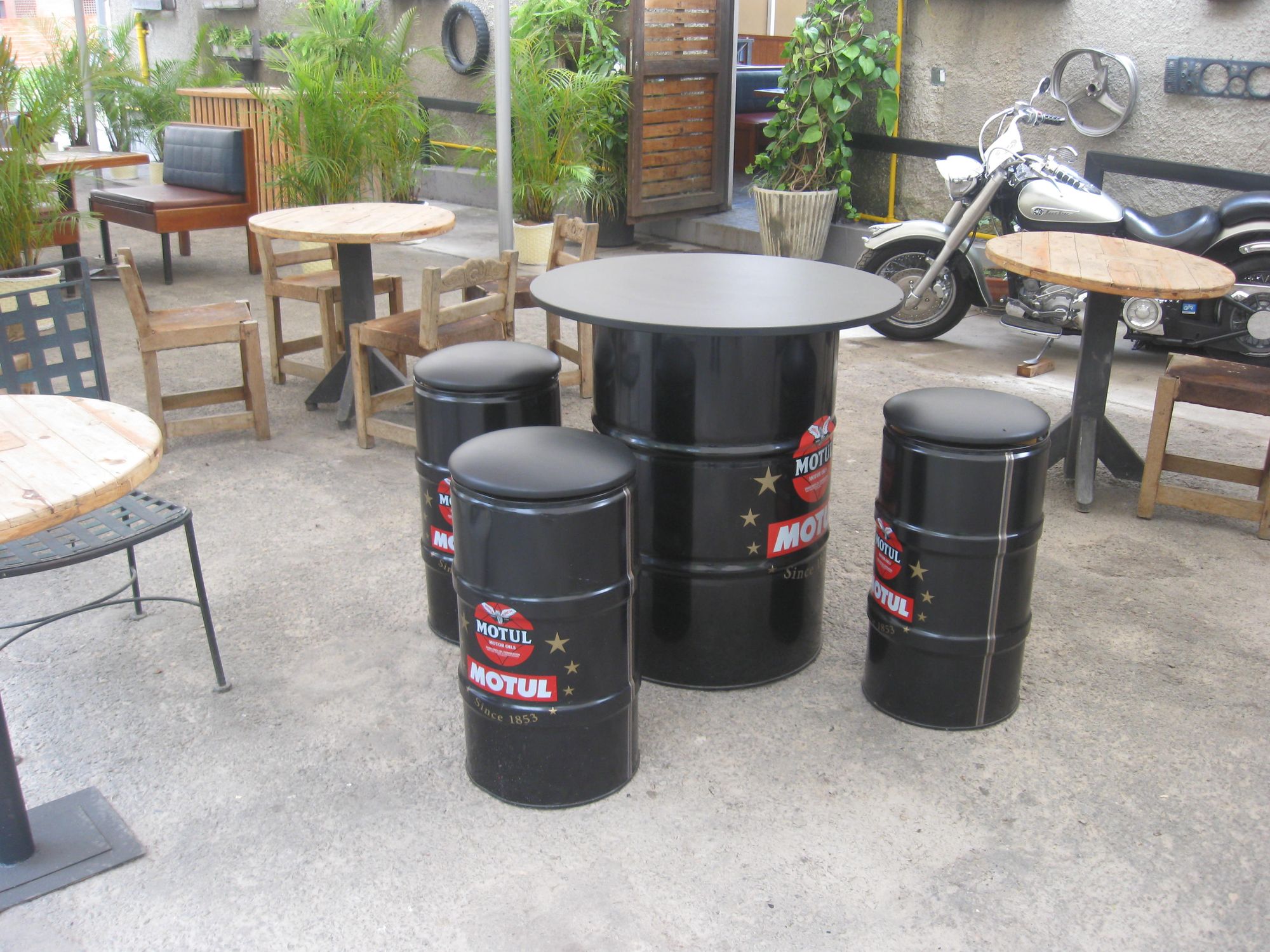 Finally, the good host showed us the rear area enabled for smokers, large awnings with rustic furniture with motorcycle parts on the walls, curiously the ashtrays were rusty metal plates of wheels.