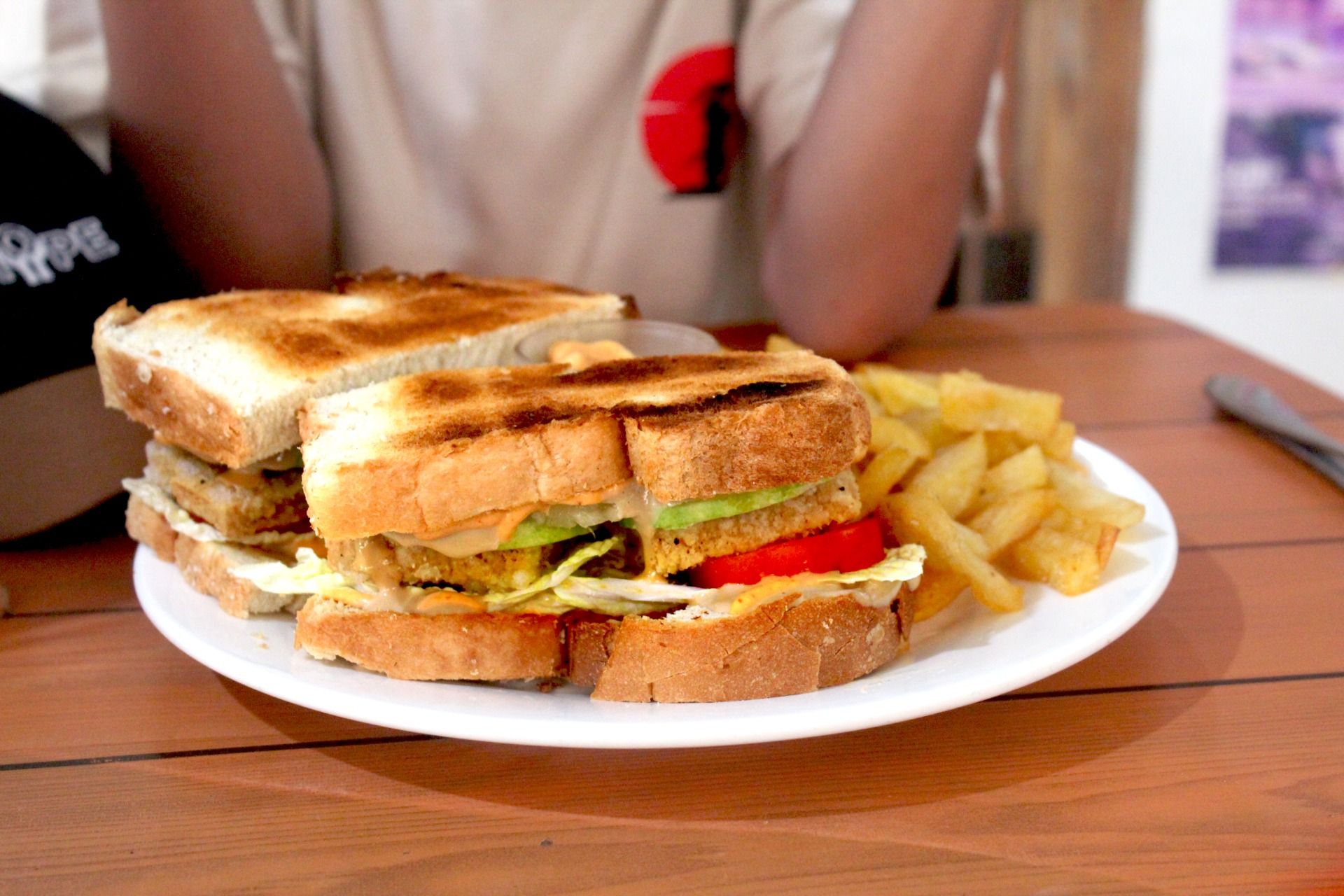 After the long journey, I took a shower and had a much-needed nap. Later, we had breakfast at Swell Café, where we found good vegan options. My son ordered a tofu sandwich, while I had a Buddha bowl with mung bean falafel. The flavors were perfectly balanced, and that meal instantly made me feel better, especially since I was still tired from the travel.