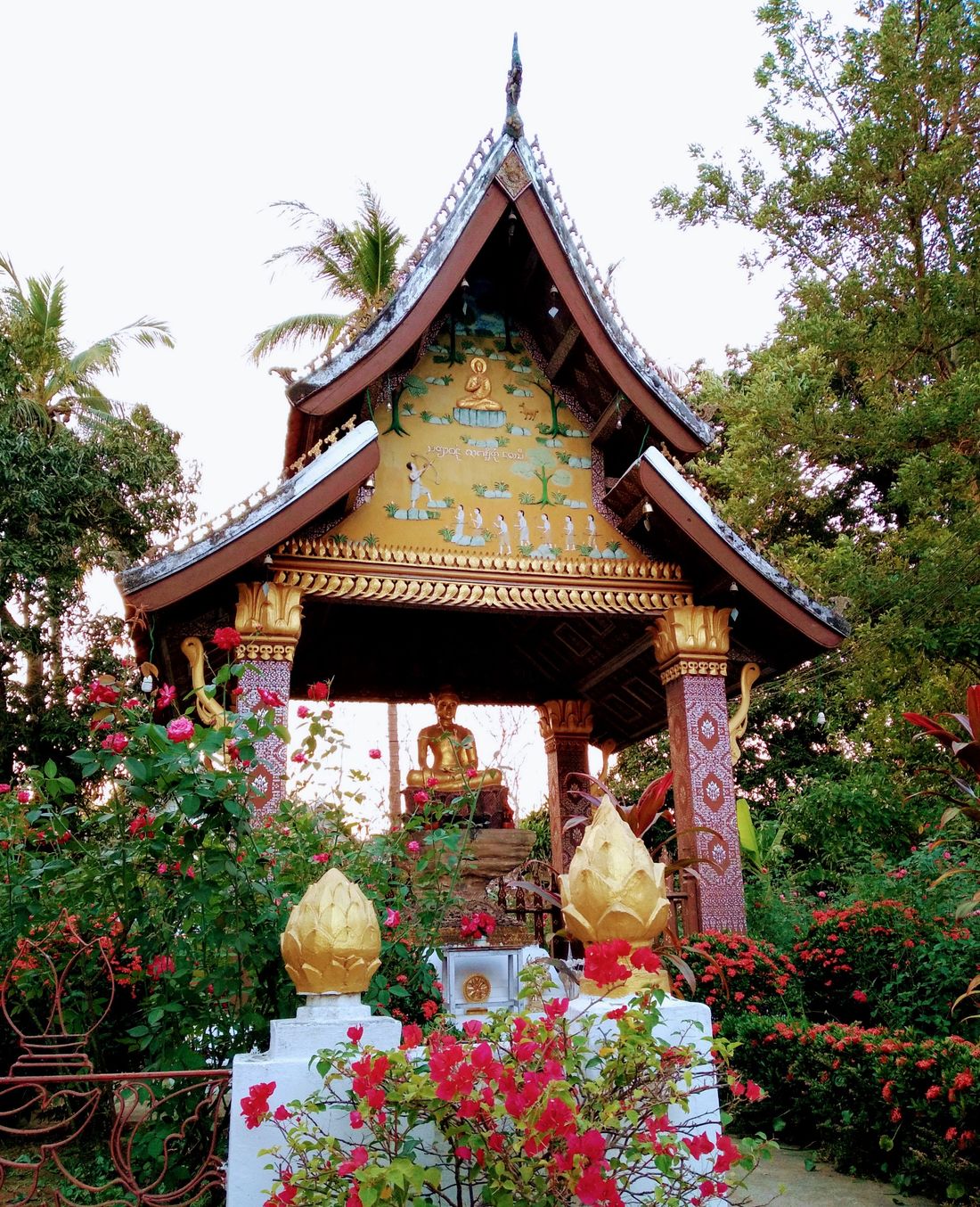 I captured this shot at sunset at Xiengthong Temple which was built in the 1500s. I imagine that way back then there were fewer distractions so they maintained the flowers and buildings even better than they do today.