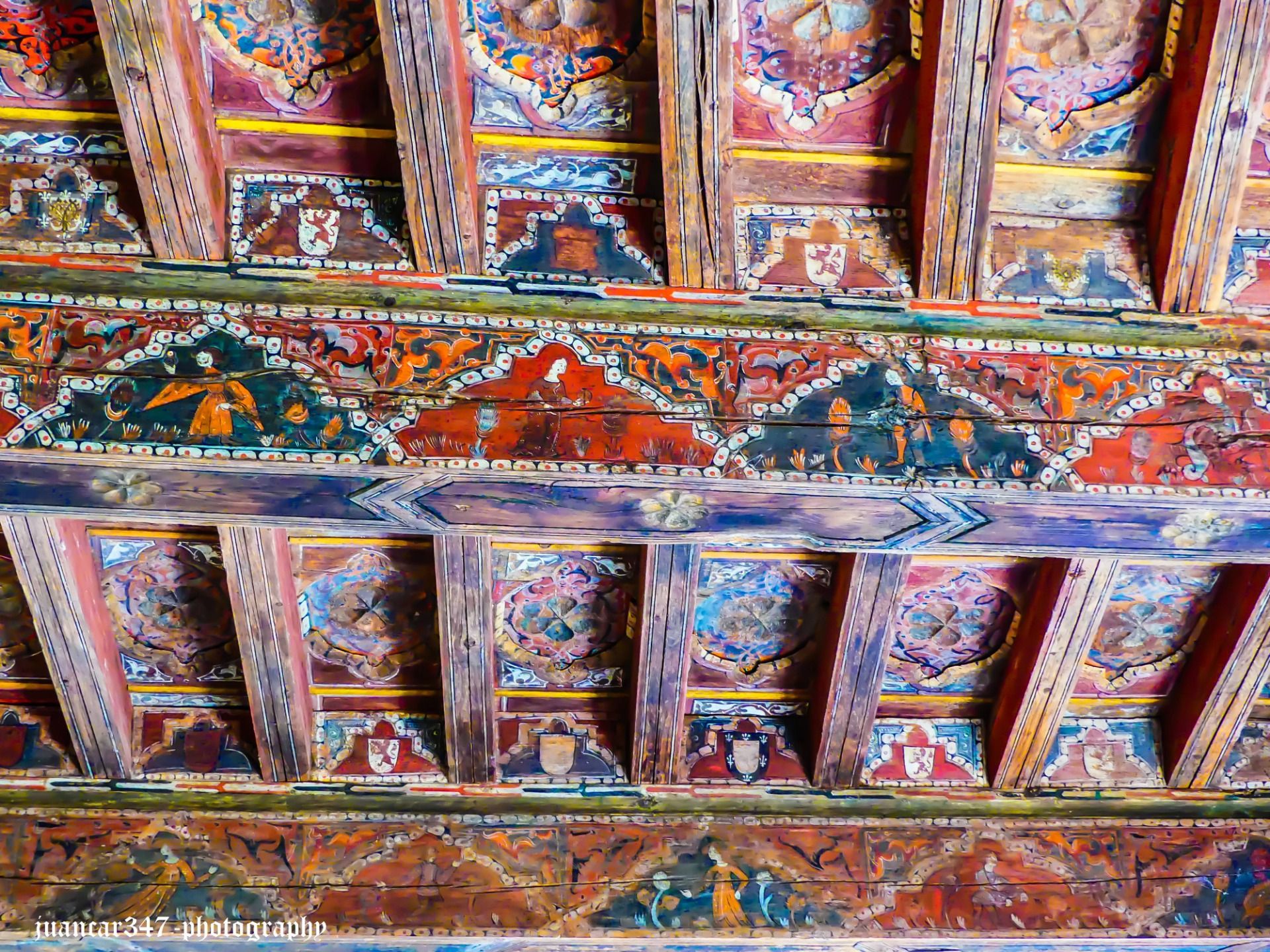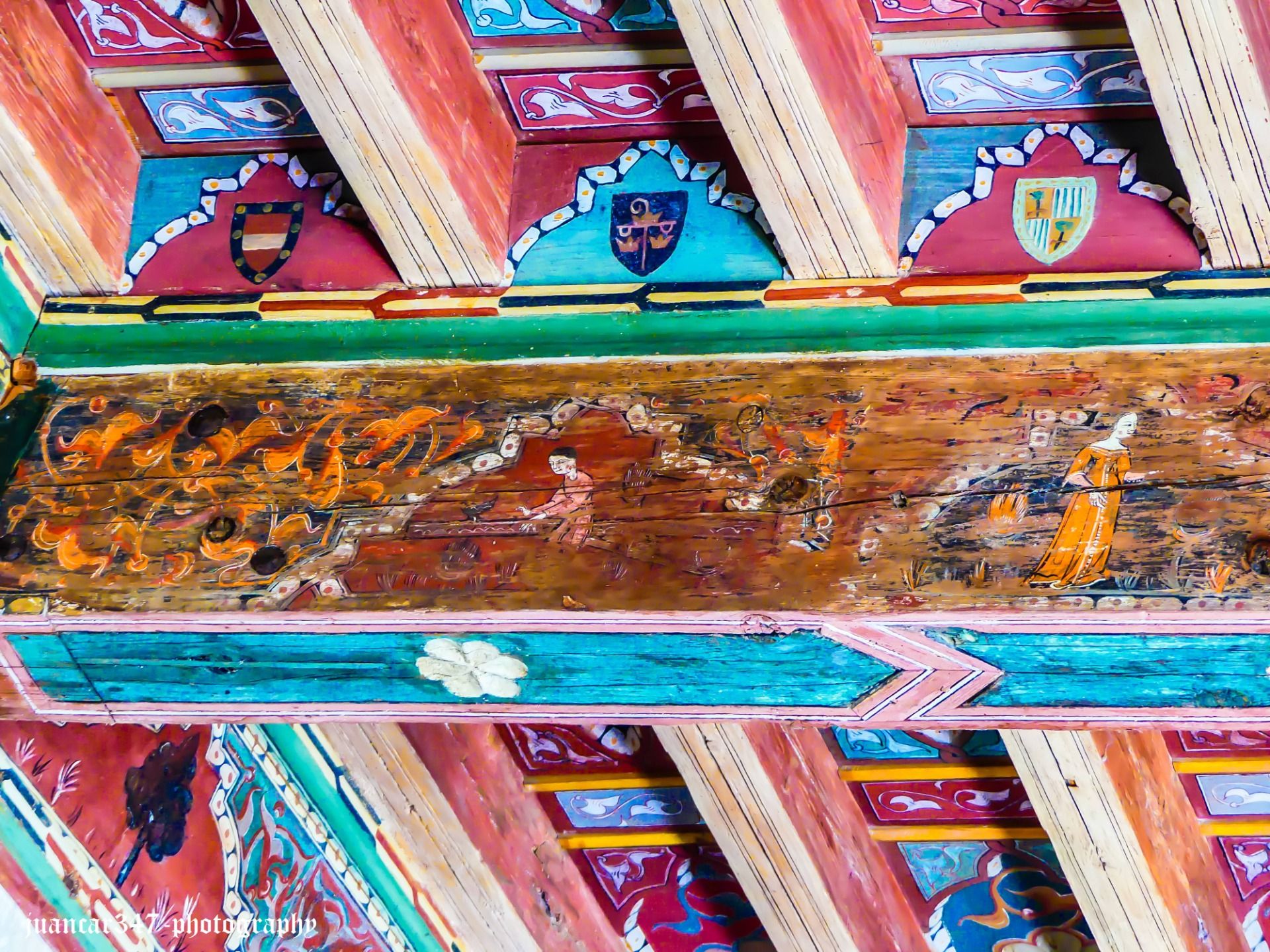 Anonymous, as is unfortunately also common in this type of art, many of whose exponents also ended up in the collections of foreign museums and individuals, the Mudejar coffered ceiling of Silos is an extraordinary piece, where its mordant nature can be considered a warning to those other underground currents that, through the visual arts, also exercised their dangerous right to disagree, in times when disagreement, as is the case today, carried dangerous consequences.